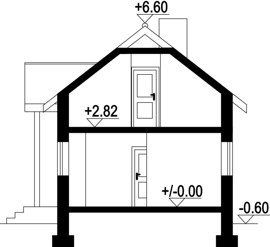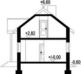 Wys. ścianki kolankowej 1.16 m Ilość drewna na więźbę 4 m³. Strop: płyta żelbetowa. Pokrycie dachu: dachówka ceramiczna. Ściany wewnętrzne: pustaki ceramiczne. Ściany zewnętrzne: pustaki ceramiczne + styropian. Typ ogrzewania: kocioł gazowy.