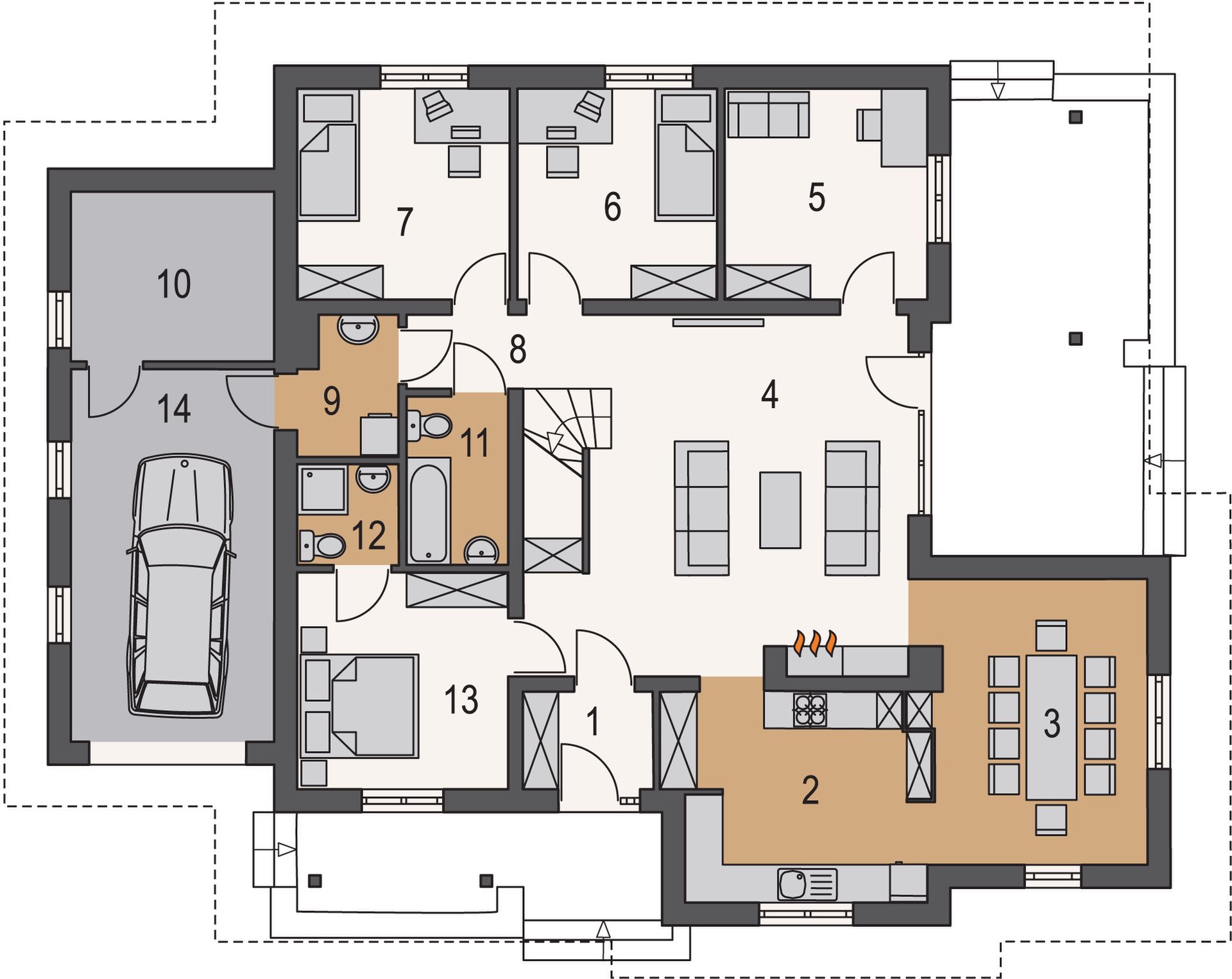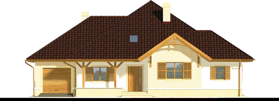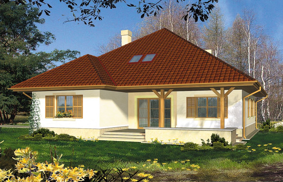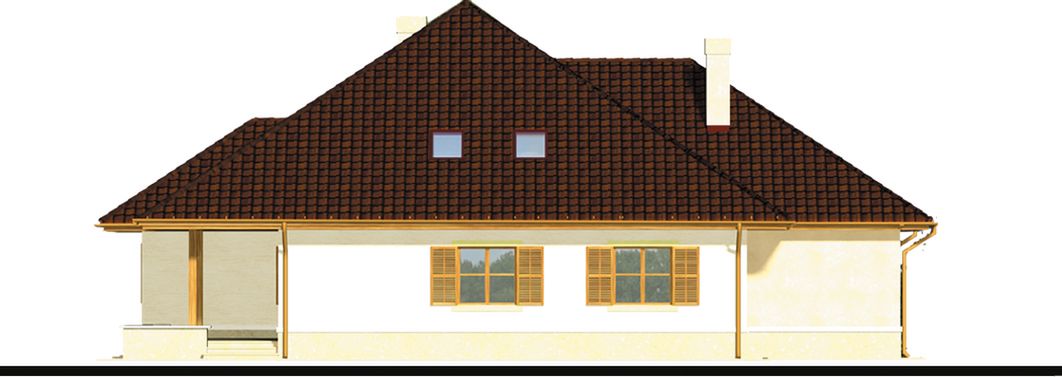 Graficzne opracowanie rzutów poglądowych widocznych na karcie projektu zostało wykonane przez Extradom.pl. Prezentowane przez Extradom.pl wizualizacje wykonane zostały przez autora projektu i należy poczytywać je jedynie za przykład i propozycję wykończenia, wizję architektoniczną autora projektu. Ostateczne wykończenie budynku może nastąpić na wiele sposobów. Szczegółowe rozwiązania zastosowane w oferowanej dokumentacji - w tym również ilość, lokalizacje i wygląd okien, drzwi, kominów - mogą w niewielkim stopniu różnić się od prezentowanej wizualizacji budynku.