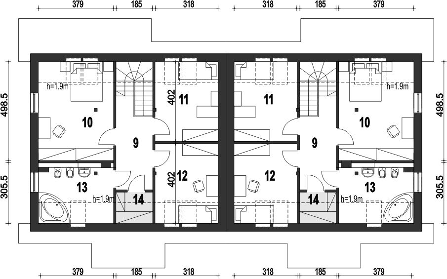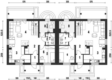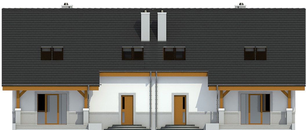 Budynek dwulokalowy posadowiony na wspólnym fundamencie. Jeśli planujesz budowę na osobnych działkach zamów pojedyncze segmenty: podstawa + lustro. Projekt jest w fazie koncepcji. Przy zakupie projektu należy zapłacić 35% zaliczki. Zaliczka jest bezzwrotna w przypadku zwrotu lub rezygnacji z zamówienia.