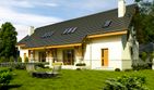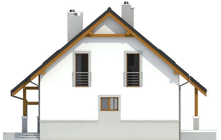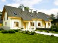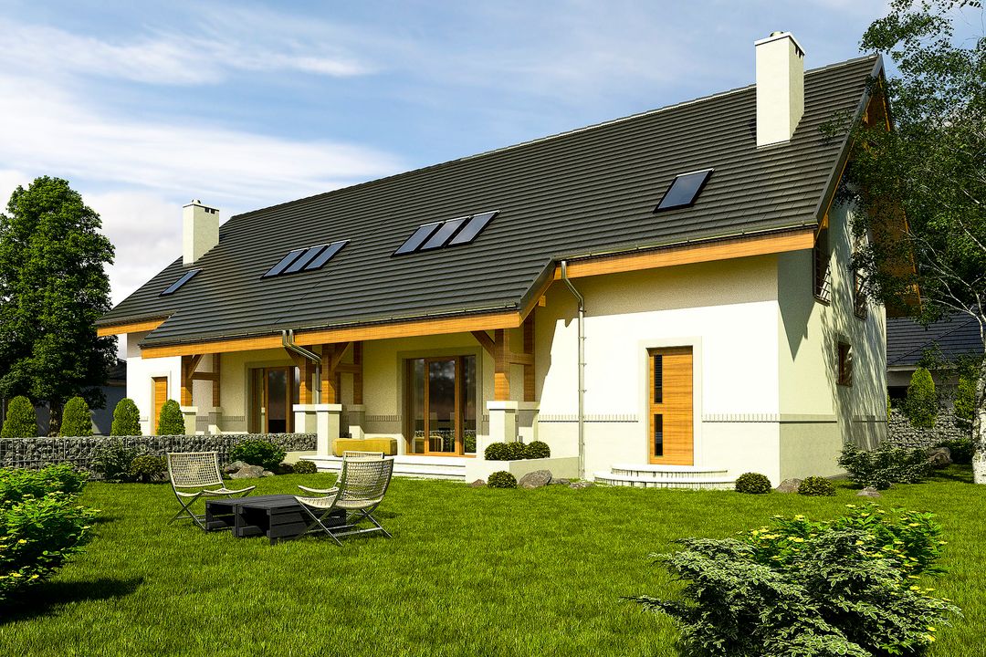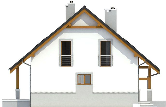 Graficzne opracowanie rzutów poglądowych widocznych na karcie projektu zostało wykonane przez Extradom.pl. Prezentowane przez Extradom.pl wizualizacje wykonane zostały przez autora projektu i należy poczytywać je jedynie za przykład i propozycję wykończenia, wizję architektoniczną autora projektu. Ostateczne wykończenie budynku może nastąpić na wiele sposobów. Szczegółowe rozwiązania zastosowane w oferowanej dokumentacji - w tym również ilość, lokalizacje i wygląd okien, drzwi, kominów - mogą w niewielkim stopniu różnić się od prezentowanej wizualizacji budynku.