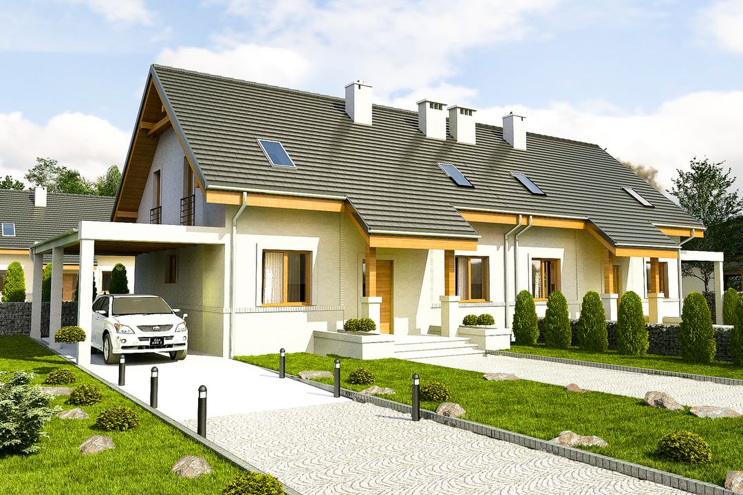 Budynek dwulokalowy posadowiony na wspólnym fundamencie. Jeśli planujesz budowę na osobnych działkach zamów pojedyncze segmenty: podstawa + lustro. Projekt jest w fazie koncepcji. Przy zakupie projektu należy zapłacić 35% zaliczki. Zaliczka jest bezzwrotna w przypadku zwrotu lub rezygnacji z zamówienia.