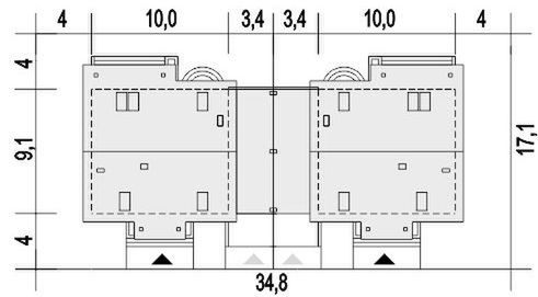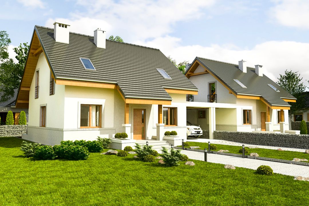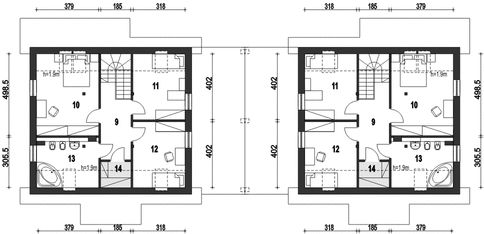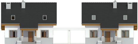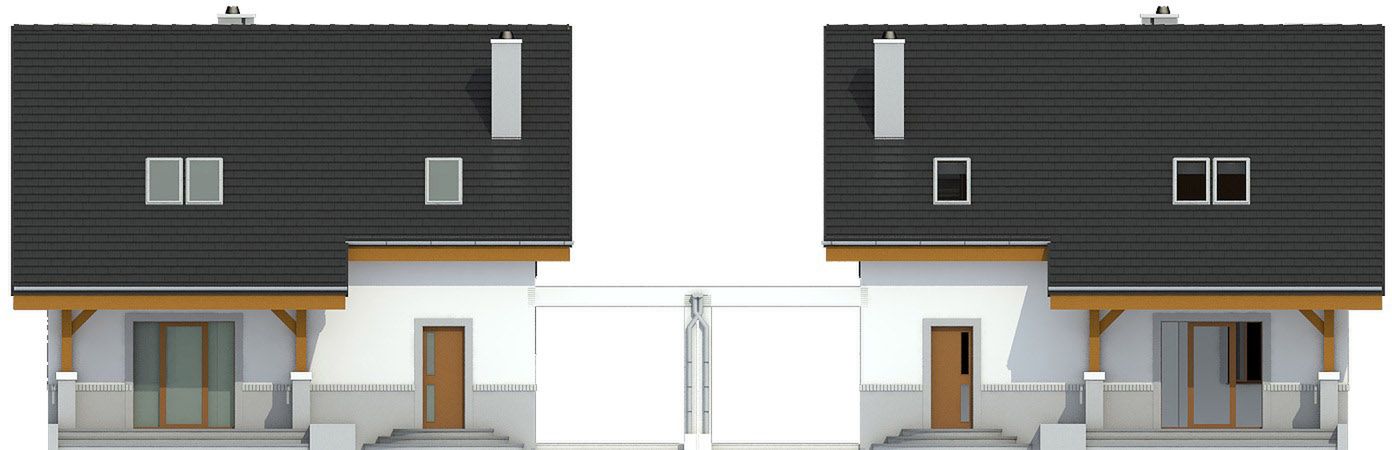 Budynek dwulokalowy posadowiony na wspólnym fundamencie. Jeśli planujesz budowę na osobnych działkach zamów pojedyncze segmenty: podstawa + lustro.