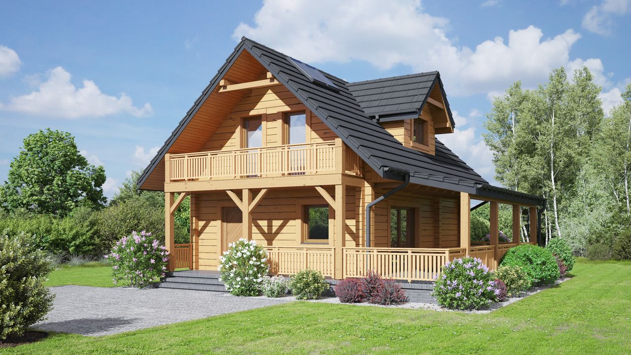 Wysokość ścianki kolankowej: 0.99 m. Strop: drewniany. Pokrycie dachu: dachówka gontopodobna Gerard Corona. Ściany zewnętrzne: płazy drewniane + wełna mineralna + deska. Ściany wewnętrzne: płazy drewniane. Typ ogrzewania: kocioł gazowy. Instalacje dodatkowe: instalacja solarna, 68.35.
