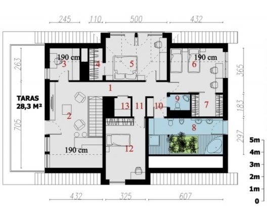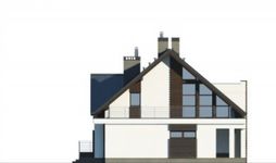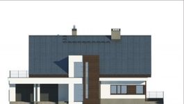 Graficzne opracowanie rzutów poglądowych widocznych na karcie projektu zostało wykonane przez Extradom.pl. Prezentowane przez Extradom.pl wizualizacje wykonane zostały przez autora projektu i należy poczytywać je jedynie za przykład i propozycję wykończenia, wizję architektoniczną autora projektu. Ostateczne wykończenie budynku może nastąpić na wiele sposobów. Szczegółowe rozwiązania zastosowane w oferowanej dokumentacji - w tym również ilość, lokalizacje i wygląd okien, drzwi, kominów - mogą w niewielkim stopniu różnić się od prezentowanej wizualizacji budynku.