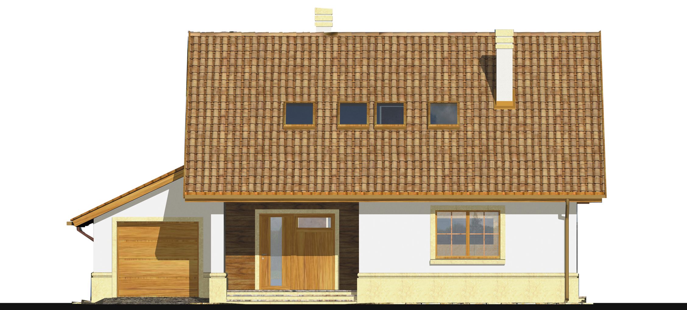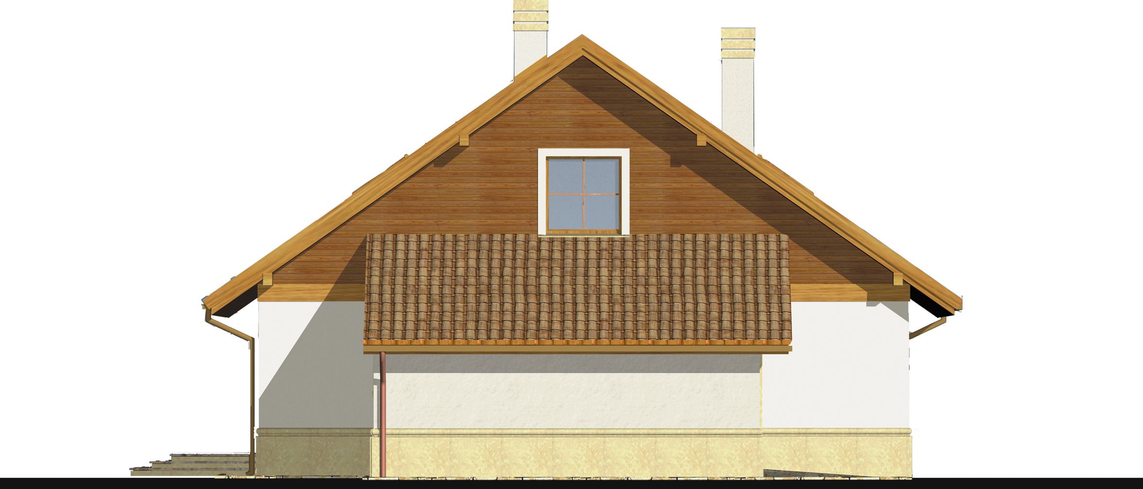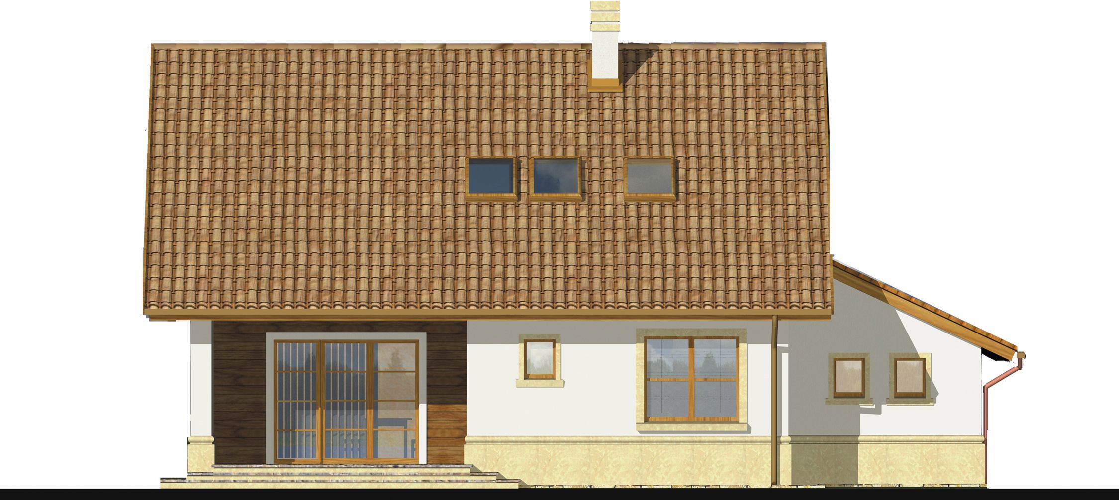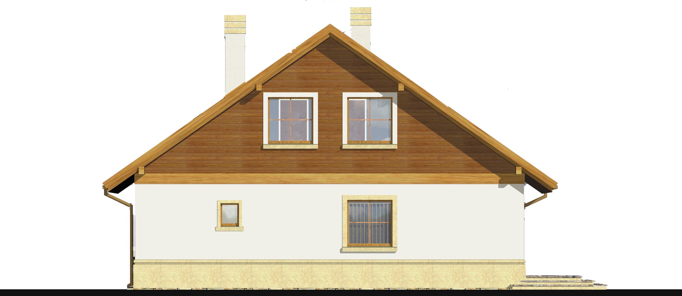 Graficzne opracowanie rzutów poglądowych widocznych na karcie projektu zostało wykonane przez Extradom.pl. Prezentowane przez Extradom.pl wizualizacje wykonane zostały przez autora projektu i należy poczytywać je jedynie za przykład i propozycję wykończenia, wizję architektoniczną autora projektu. Ostateczne wykończenie budynku może nastąpić na wiele sposobów. Szczegółowe rozwiązania zastosowane w oferowanej dokumentacji - w tym również ilość, lokalizacje i wygląd okien, drzwi, kominów - mogą w niewielkim stopniu różnić się od prezentowanej wizualizacji budynku.