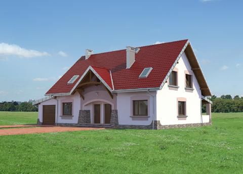 Graficzne opracowanie rzutów poglądowych widocznych na karcie projektu zostało wykonane przez Extradom.pl. Prezentowane przez Extradom.pl wizualizacje wykonane zostały przez autora projektu i należy poczytywać je jedynie za przykład i propozycję wykończenia, wizję architektoniczną autora projektu. Ostateczne wykończenie budynku może nastąpić na wiele sposobów. Szczegółowe rozwiązania zastosowane w oferowanej dokumentacji - w tym również ilość, lokalizacje i wygląd okien, drzwi, kominów - mogą w niewielkim stopniu różnić się od prezentowanej wizualizacji budynku.