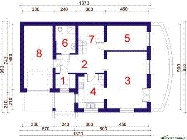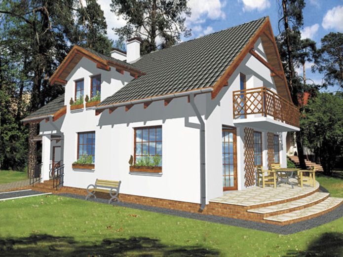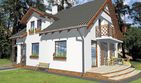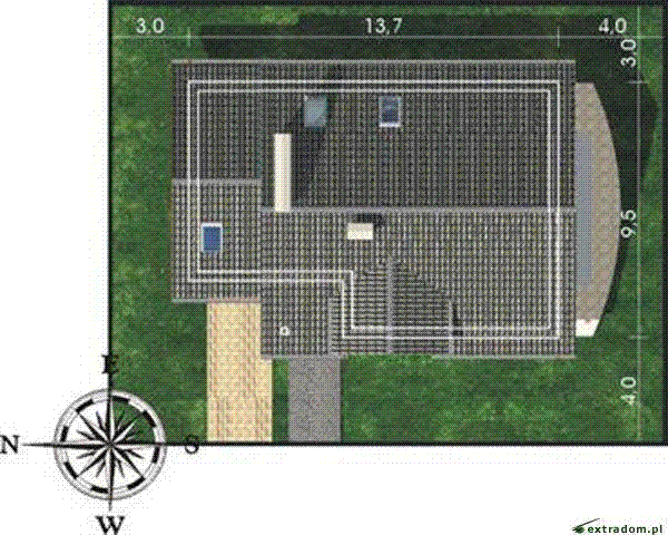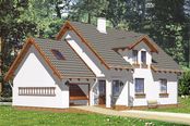 Graficzne opracowanie rzutów poglądowych widocznych na karcie projektu zostało wykonane przez Extradom.pl. Prezentowane przez Extradom.pl wizualizacje wykonane zostały przez autora projektu i należy poczytywać je jedynie za przykład i propozycję wykończenia, wizję architektoniczną autora projektu. Ostateczne wykończenie budynku może nastąpić na wiele sposobów. Szczegółowe rozwiązania zastosowane w oferowanej dokumentacji - w tym również ilość, lokalizacje i wygląd okien, drzwi, kominów - mogą w niewielkim stopniu różnić się od prezentowanej wizualizacji budynku.