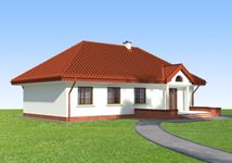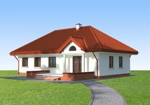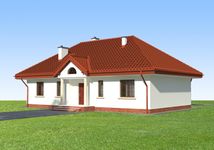 Graficzne opracowanie rzutów poglądowych widocznych na karcie projektu zostało wykonane przez Extradom.pl. Prezentowane przez Extradom.pl wizualizacje wykonane zostały przez autora projektu i należy poczytywać je jedynie za przykład i propozycję wykończenia, wizję architektoniczną autora projektu. Ostateczne wykończenie budynku może nastąpić na wiele sposobów. Szczegółowe rozwiązania zastosowane w oferowanej dokumentacji - w tym również ilość, lokalizacje i wygląd okien, drzwi, kominów - mogą w niewielkim stopniu różnić się od prezentowanej wizualizacji budynku.
