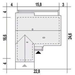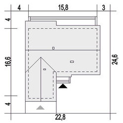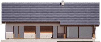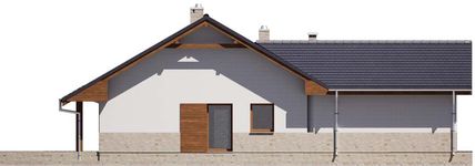 Graficzne opracowanie rzutów poglądowych widocznych na karcie projektu zostało wykonane przez Extradom.pl. Prezentowane przez Extradom.pl wizualizacje wykonane zostały przez autora projektu i należy poczytywać je jedynie za przykład i propozycję wykończenia, wizję architektoniczną autora projektu. Ostateczne wykończenie budynku może nastąpić na wiele sposobów. Szczegółowe rozwiązania zastosowane w oferowanej dokumentacji - w tym również ilość, lokalizacje i wygląd okien, drzwi, kominów - mogą w niewielkim stopniu różnić się od prezentowanej wizualizacji budynku.