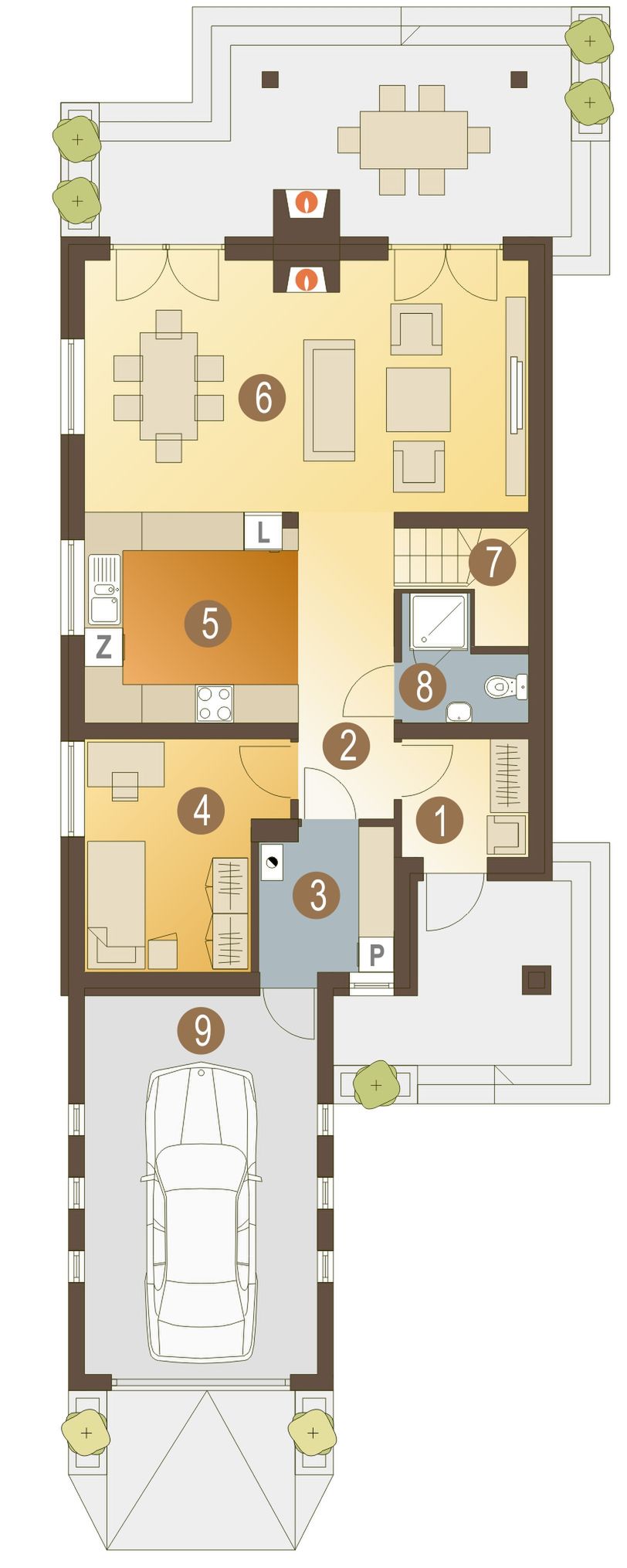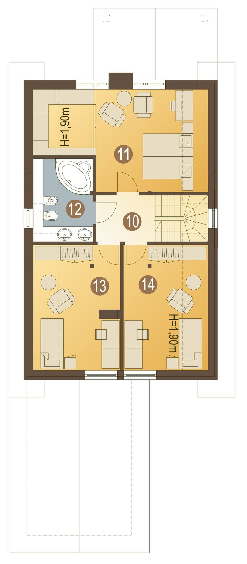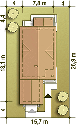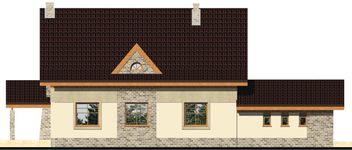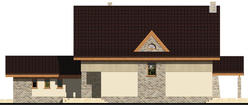 Graficzne opracowanie rzutów poglądowych widocznych na karcie projektu zostało wykonane przez Extradom.pl. Prezentowane przez Extradom.pl wizualizacje wykonane zostały przez autora projektu i należy poczytywać je jedynie za przykład i propozycję wykończenia, wizję architektoniczną autora projektu. Ostateczne wykończenie budynku może nastąpić na wiele sposobów. Szczegółowe rozwiązania zastosowane w oferowanej dokumentacji - w tym również ilość, lokalizacje i wygląd okien, drzwi, kominów - mogą w niewielkim stopniu różnić się od prezentowanej wizualizacji budynku.