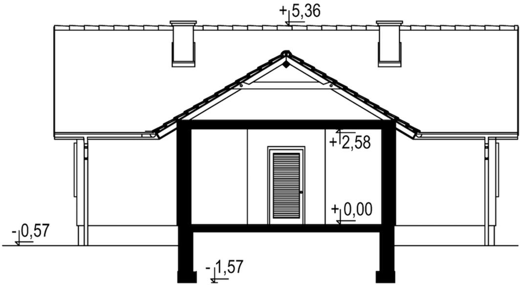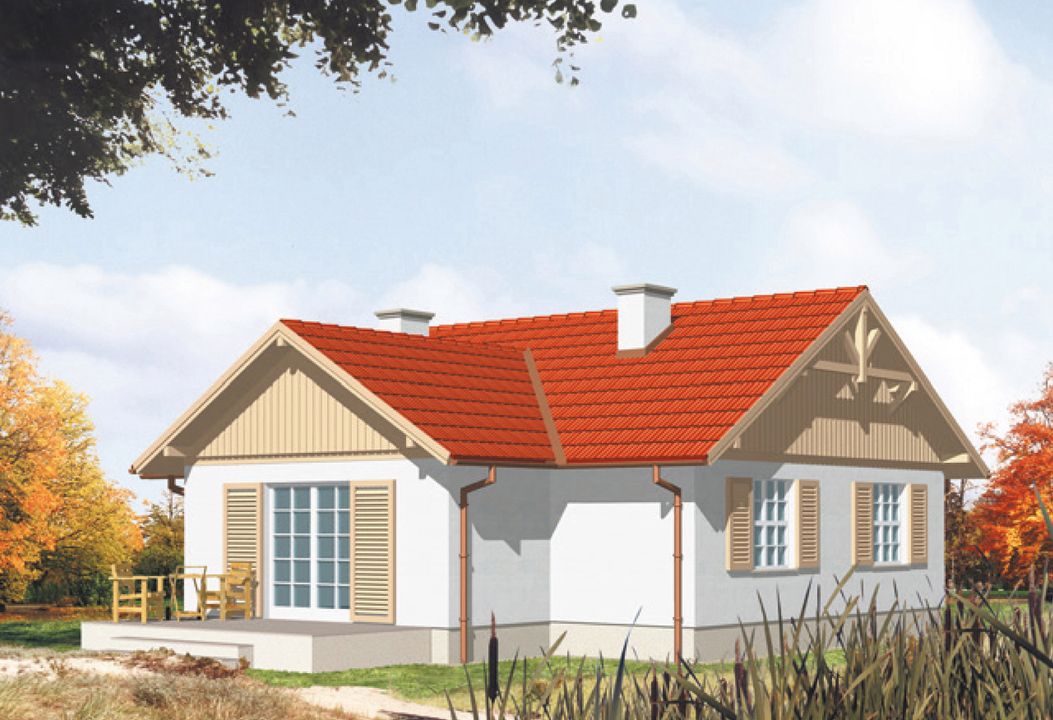 Graficzne opracowanie rzutów poglądowych widocznych na karcie projektu zostało wykonane przez Extradom.pl. Prezentowane przez Extradom.pl wizualizacje wykonane zostały przez autora projektu i należy poczytywać je jedynie za przykład i propozycję wykończenia, wizję architektoniczną autora projektu. Ostateczne wykończenie budynku może nastąpić na wiele sposobów. Szczegółowe rozwiązania zastosowane w oferowanej dokumentacji - w tym również ilość, lokalizacje i wygląd okien, drzwi, kominów - mogą w niewielkim stopniu różnić się od prezentowanej wizualizacji budynku.