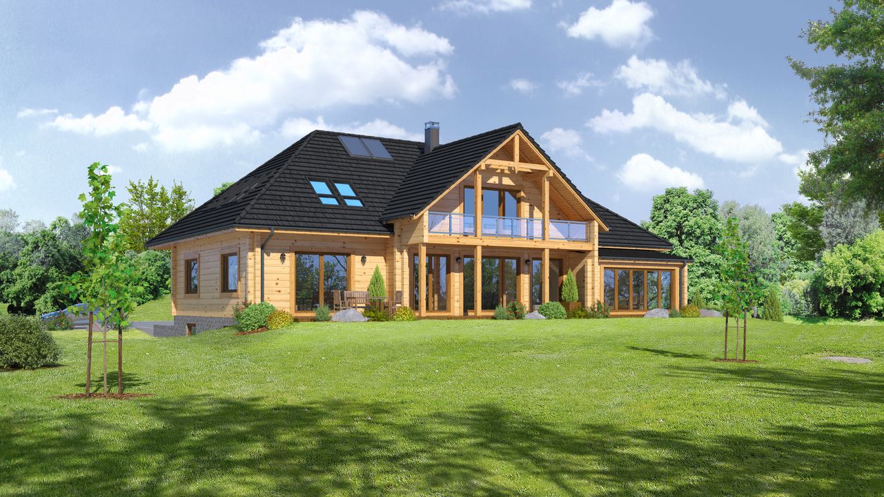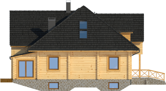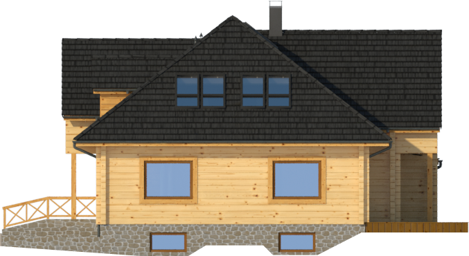 Wysokość ścianki kolankowej: 0.62 m. Strop: żelbet + drewniany. Pokrycie dachu: dachówka gontopodobna Gerard Corona. Ściany zewnętrzne: płazy drewniane + wełna mineralna + deska. Ściany wewnętrzne: płazy drewniane. Typ ogrzewania: kocioł gazowy. Instalacje dodatkowe: instalacja solarna. Inne: okna połaciowe Fakro.