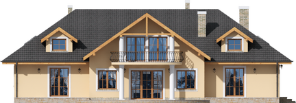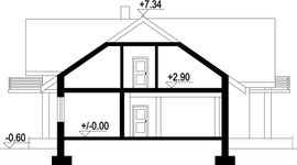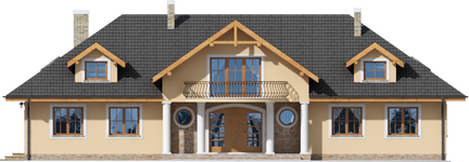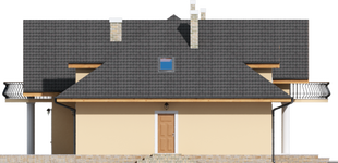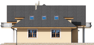 Graficzne opracowanie rzutów poglądowych widocznych na karcie projektu zostało wykonane przez Extradom.pl. Prezentowane przez Extradom.pl wizualizacje wykonane zostały przez autora projektu i należy poczytywać je jedynie za przykład i propozycję wykończenia, wizję architektoniczną autora projektu. Ostateczne wykończenie budynku może nastąpić na wiele sposobów. Szczegółowe rozwiązania zastosowane w oferowanej dokumentacji - w tym również ilość, lokalizacje i wygląd okien, drzwi, kominów - mogą w niewielkim stopniu różnić się od prezentowanej wizualizacji budynku.