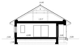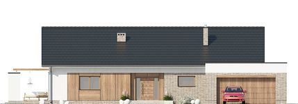 Graficzne opracowanie rzutów poglądowych widocznych na karcie projektu zostało wykonane przez Extradom.pl. Prezentowane przez Extradom.pl wizualizacje wykonane zostały przez autora projektu i należy poczytywać je jedynie za przykład i propozycję wykończenia, wizję architektoniczną autora projektu. Ostateczne wykończenie budynku może nastąpić na wiele sposobów. Szczegółowe rozwiązania zastosowane w oferowanej dokumentacji - w tym również ilość, lokalizacje i wygląd okien, drzwi, kominów - mogą w niewielkim stopniu różnić się od prezentowanej wizualizacji budynku.