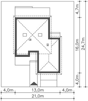 Graficzne opracowanie rzutów poglądowych widocznych na karcie projektu zostało wykonane przez Extradom.pl. Prezentowane przez Extradom.pl wizualizacje wykonane zostały przez autora projektu i należy poczytywać je jedynie za przykład i propozycję wykończenia, wizję architektoniczną autora projektu. Ostateczne wykończenie budynku może nastąpić na wiele sposobów. Szczegółowe rozwiązania zastosowane w oferowanej dokumentacji - w tym również ilość, lokalizacje i wygląd okien, drzwi, kominów - mogą w niewielkim stopniu różnić się od prezentowanej wizualizacji budynku.