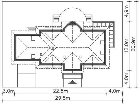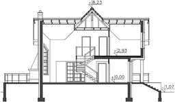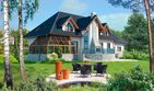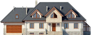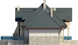 Graficzne opracowanie rzutów poglądowych widocznych na karcie projektu zostało wykonane przez Extradom.pl. Prezentowane przez Extradom.pl wizualizacje wykonane zostały przez autora projektu i należy poczytywać je jedynie za przykład i propozycję wykończenia, wizję architektoniczną autora projektu. Ostateczne wykończenie budynku może nastąpić na wiele sposobów. Szczegółowe rozwiązania zastosowane w oferowanej dokumentacji - w tym również ilość, lokalizacje i wygląd okien, drzwi, kominów - mogą w niewielkim stopniu różnić się od prezentowanej wizualizacji budynku.