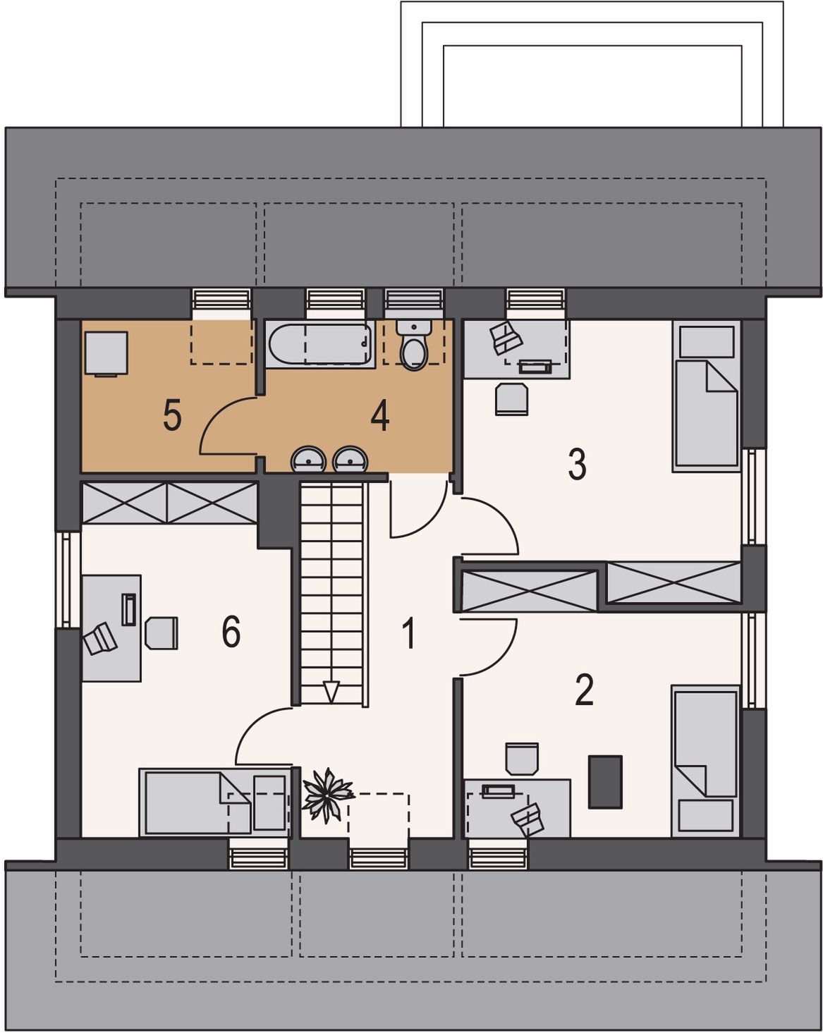 Graficzne opracowanie rzutów poglądowych widocznych na karcie projektu zostało wykonane przez Extradom.pl. Prezentowane przez Extradom.pl wizualizacje wykonane zostały przez autora projektu i należy poczytywać je jedynie za przykład i propozycję wykończenia, wizję architektoniczną autora projektu. Ostateczne wykończenie budynku może nastąpić na wiele sposobów. Szczegółowe rozwiązania zastosowane w oferowanej dokumentacji - w tym również ilość, lokalizacje i wygląd okien, drzwi, kominów - mogą w niewielkim stopniu różnić się od prezentowanej wizualizacji budynku.