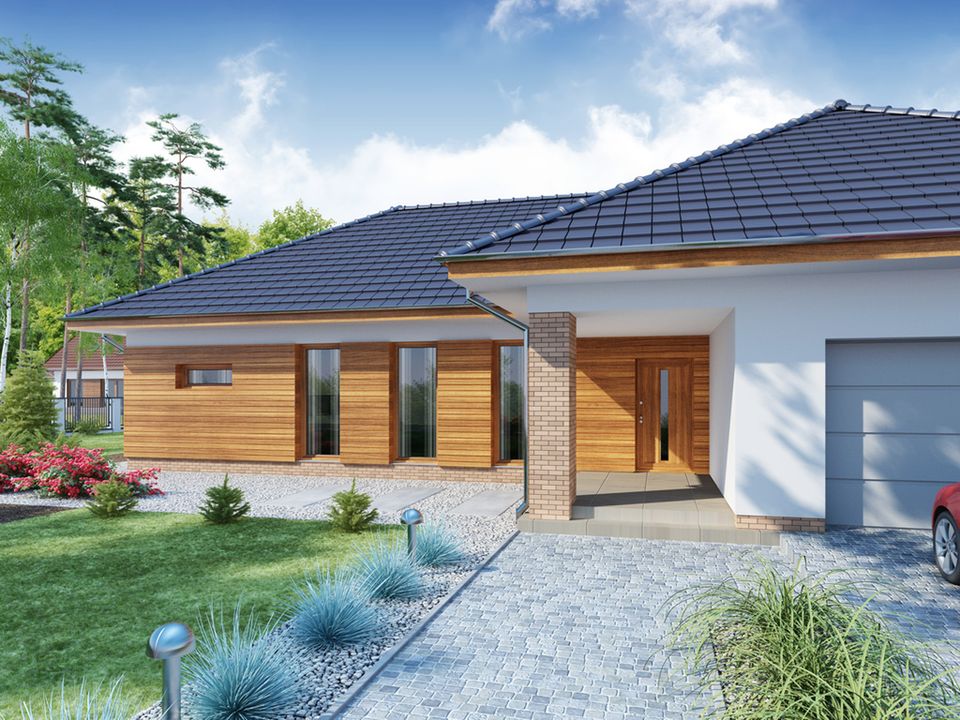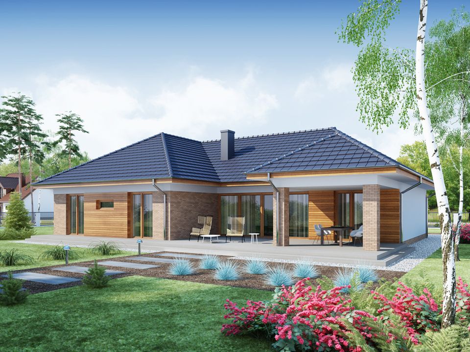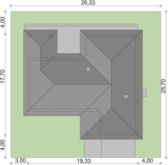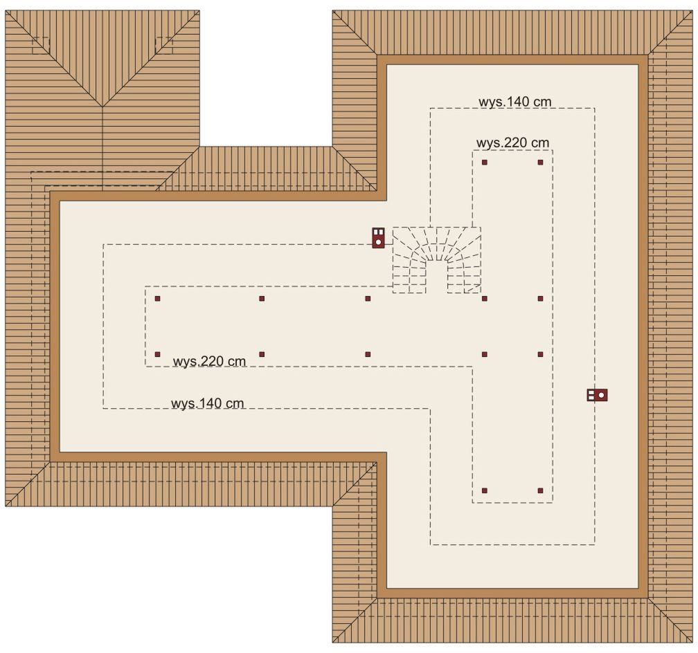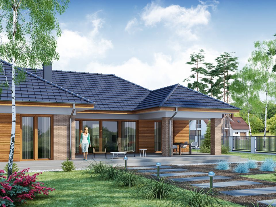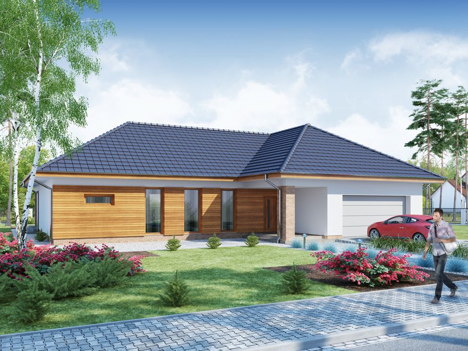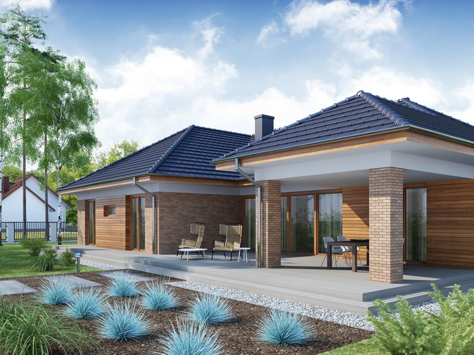 Graficzne opracowanie rzutów poglądowych widocznych na karcie projektu zostało wykonane przez Extradom.pl. Prezentowane przez Extradom.pl wizualizacje wykonane zostały przez autora projektu i należy poczytywać je jedynie za przykład i propozycję wykończenia, wizję architektoniczną autora projektu. Ostateczne wykończenie budynku może nastąpić na wiele sposobów. Szczegółowe rozwiązania zastosowane w oferowanej dokumentacji - w tym również ilość, lokalizacje i wygląd okien, drzwi, kominów - mogą w niewielkim stopniu różnić się od prezentowanej wizualizacji budynku.