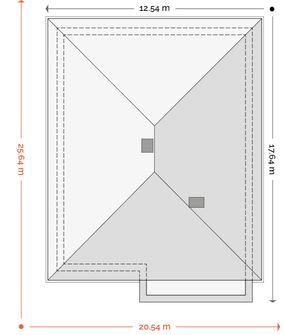 Graficzne opracowanie rzutów poglądowych widocznych na karcie projektu zostało wykonane przez Extradom.pl. Prezentowane przez Extradom.pl wizualizacje wykonane zostały przez autora projektu i należy poczytywać je jedynie za przykład i propozycję wykończenia, wizję architektoniczną autora projektu. Ostateczne wykończenie budynku może nastąpić na wiele sposobów. Szczegółowe rozwiązania zastosowane w oferowanej dokumentacji - w tym również ilość, lokalizacje i wygląd okien, drzwi, kominów - mogą w niewielkim stopniu różnić się od prezentowanej wizualizacji budynku.
