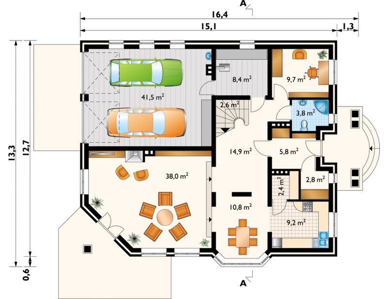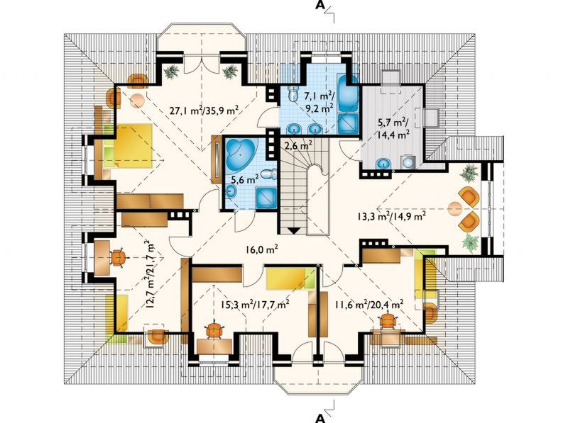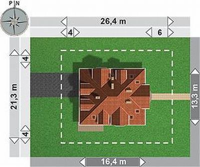 Graficzne opracowanie rzutów poglądowych widocznych na karcie projektu zostało wykonane przez Extradom.pl. Prezentowane przez Extradom.pl wizualizacje wykonane zostały przez autora projektu i należy poczytywać je jedynie za przykład i propozycję wykończenia, wizję architektoniczną autora projektu. Ostateczne wykończenie budynku może nastąpić na wiele sposobów. Szczegółowe rozwiązania zastosowane w oferowanej dokumentacji - w tym również ilość, lokalizacje i wygląd okien, drzwi, kominów - mogą w niewielkim stopniu różnić się od prezentowanej wizualizacji budynku.