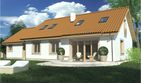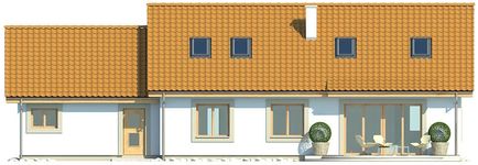 Graficzne opracowanie rzutów poglądowych widocznych na karcie projektu zostało wykonane przez Extradom.pl. Prezentowane przez Extradom.pl wizualizacje wykonane zostały przez autora projektu i należy poczytywać je jedynie za przykład i propozycję wykończenia, wizję architektoniczną autora projektu. Ostateczne wykończenie budynku może nastąpić na wiele sposobów. Szczegółowe rozwiązania zastosowane w oferowanej dokumentacji - w tym również ilość, lokalizacje i wygląd okien, drzwi, kominów - mogą w niewielkim stopniu różnić się od prezentowanej wizualizacji budynku.