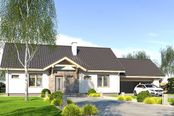 Graficzne opracowanie rzutów poglądowych widocznych na karcie projektu zostało wykonane przez Extradom.pl. Prezentowane przez Extradom.pl wizualizacje wykonane zostały przez autora projektu i należy poczytywać je jedynie za przykład i propozycję wykończenia, wizję architektoniczną autora projektu. Ostateczne wykończenie budynku może nastąpić na wiele sposobów. Szczegółowe rozwiązania zastosowane w oferowanej dokumentacji - w tym również ilość, lokalizacje i wygląd okien, drzwi, kominów - mogą w niewielkim stopniu różnić się od prezentowanej wizualizacji budynku.