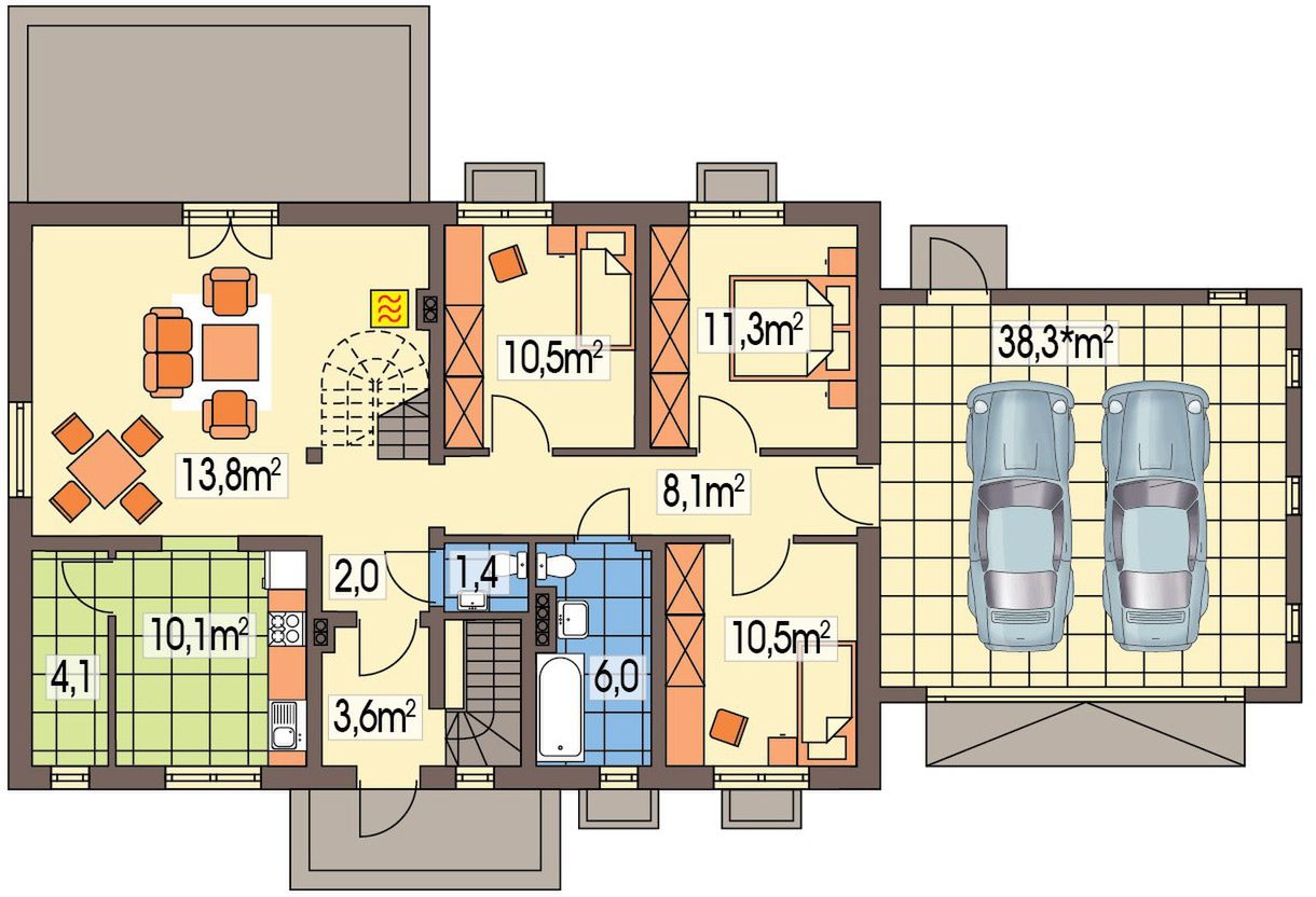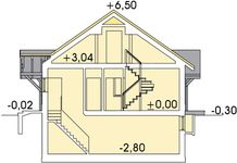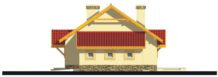 Graficzne opracowanie rzutów poglądowych widocznych na karcie projektu zostało wykonane przez Extradom.pl. Prezentowane przez Extradom.pl wizualizacje wykonane zostały przez autora projektu i należy poczytywać je jedynie za przykład i propozycję wykończenia, wizję architektoniczną autora projektu. Ostateczne wykończenie budynku może nastąpić na wiele sposobów. Szczegółowe rozwiązania zastosowane w oferowanej dokumentacji - w tym również ilość, lokalizacje i wygląd okien, drzwi, kominów - mogą w niewielkim stopniu różnić się od prezentowanej wizualizacji budynku.
