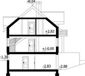 Wysokość ścianki kolankowej: 1.04 m. Strop: płyta żelbetowa. Pokrycie dachu: dachówka ceramiczna. Ściany zewnętrzne: pustaki ceramiczne + styropian. Ściany wewnętrzne: pustaki ceramiczne. Typ ogrzewania: kocioł na paliwo stałe.