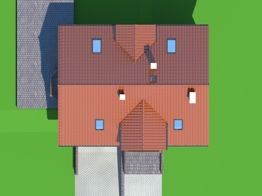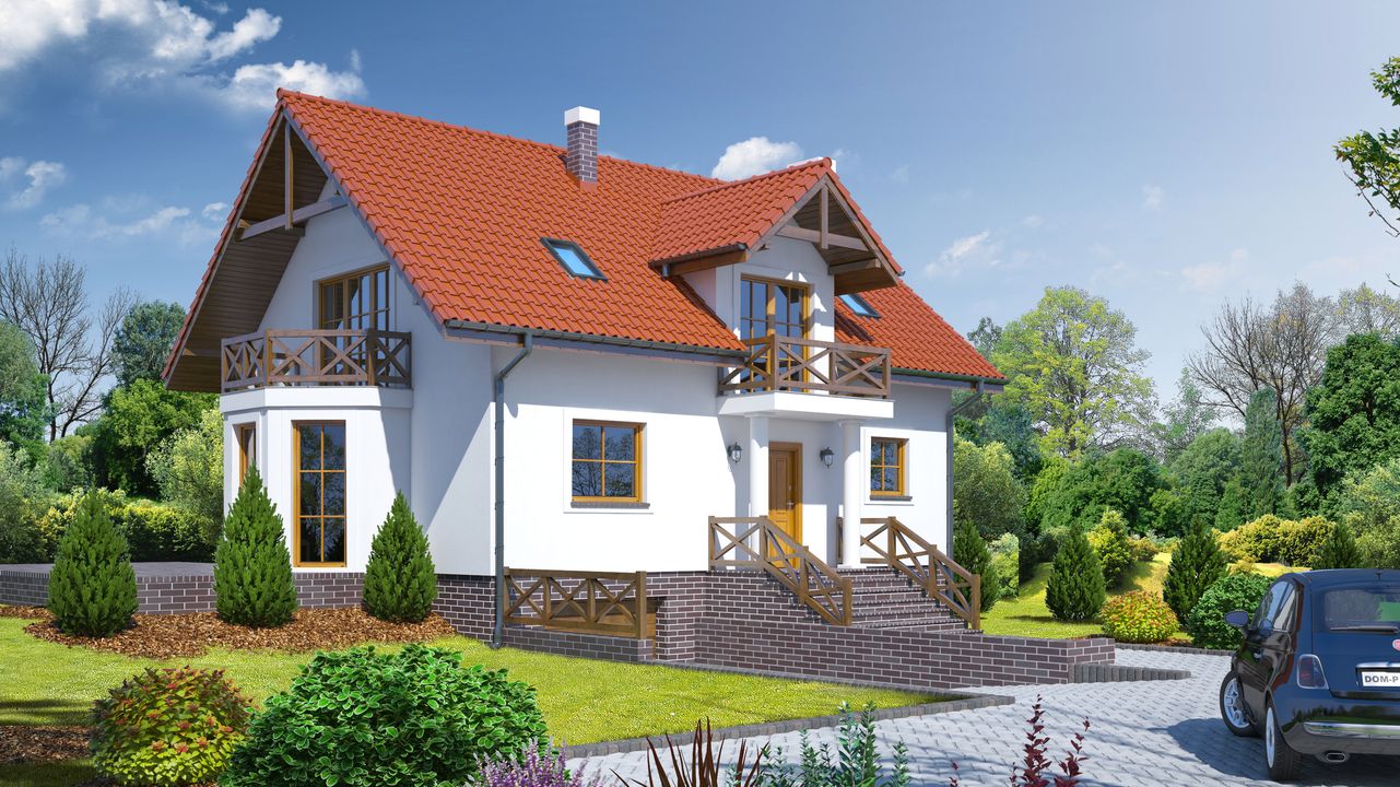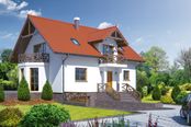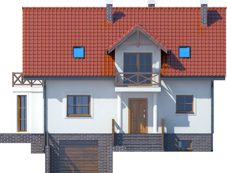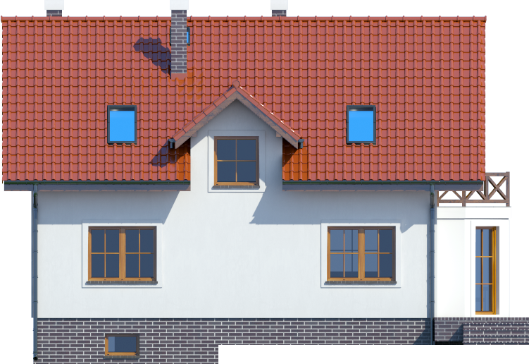 Graficzne opracowanie rzutów poglądowych widocznych na karcie projektu zostało wykonane przez Extradom.pl. Prezentowane przez Extradom.pl wizualizacje wykonane zostały przez autora projektu i należy poczytywać je jedynie za przykład i propozycję wykończenia, wizję architektoniczną autora projektu. Ostateczne wykończenie budynku może nastąpić na wiele sposobów. Szczegółowe rozwiązania zastosowane w oferowanej dokumentacji - w tym również ilość, lokalizacje i wygląd okien, drzwi, kominów - mogą w niewielkim stopniu różnić się od prezentowanej wizualizacji budynku.