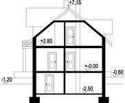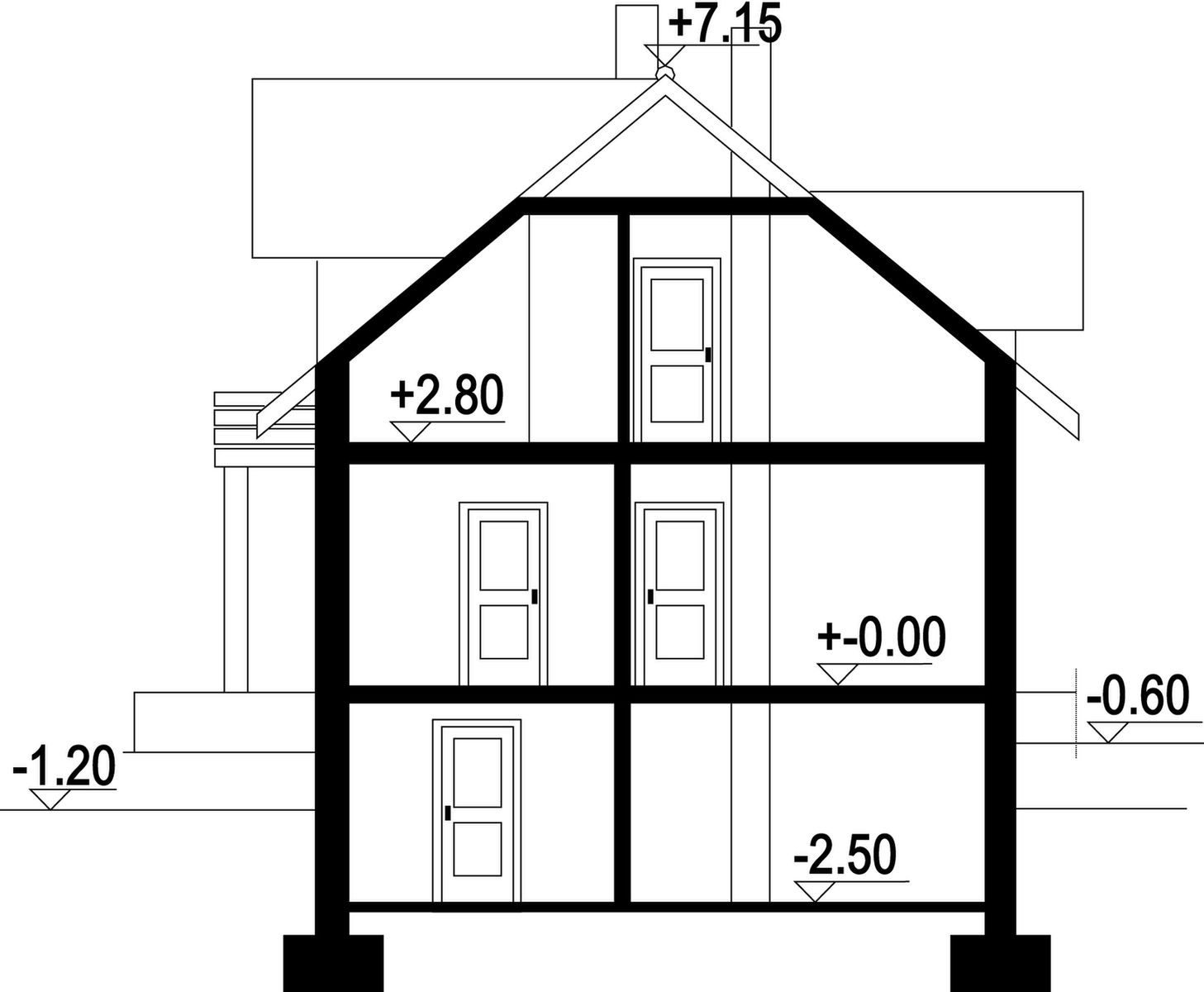 Wys. ścianki kolankowej 0.72 m Ilość drewna na więźbę 9.06 m³. Strop: płyta żelbetowa. Pokrycie dachu: dachówka ceramiczna. Ściany wewnętrzne: pustaki ceramiczne. Ściany zewnętrzne: pustaki ceramiczne + styropian. Typ ogrzewania: kocioł gazowy.