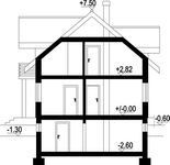 Graficzne opracowanie rzutów poglądowych widocznych na karcie projektu zostało wykonane przez Extradom.pl. Prezentowane przez Extradom.pl wizualizacje wykonane zostały przez autora projektu i należy poczytywać je jedynie za przykład i propozycję wykończenia, wizję architektoniczną autora projektu. Ostateczne wykończenie budynku może nastąpić na wiele sposobów. Szczegółowe rozwiązania zastosowane w oferowanej dokumentacji - w tym również ilość, lokalizacje i wygląd okien, drzwi, kominów - mogą w niewielkim stopniu różnić się od prezentowanej wizualizacji budynku.