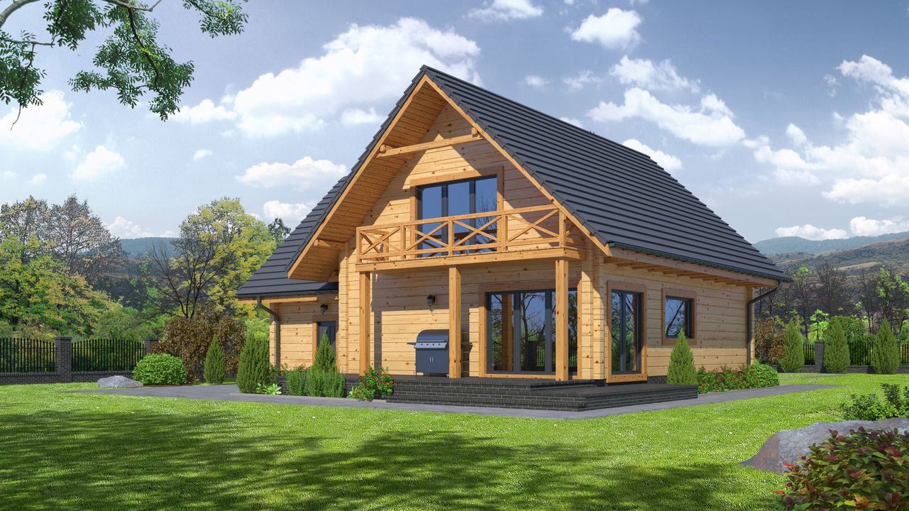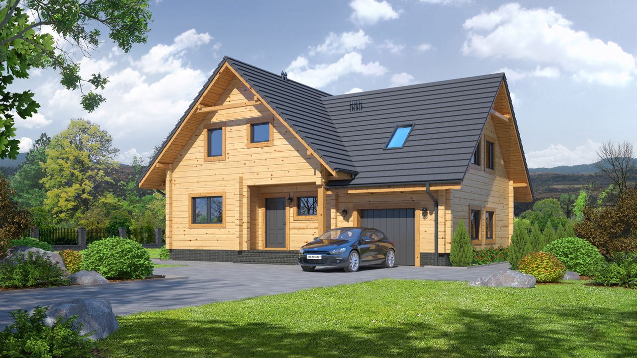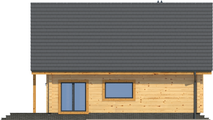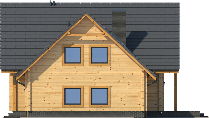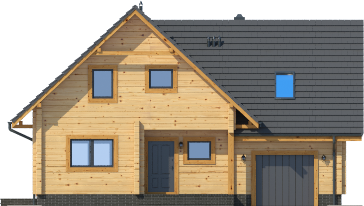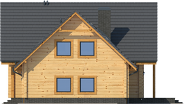 Wysokość ścianki kolankowej: 0.83 m. Strop: drewniany. Pokrycie dachu: dachówka gontopodobna Gerard Corona. Ściany zewnętrzne: płazy drewniane + wełna mineralna + deska. Ściany wewnętrzne: płazy drewniane. Typ ogrzewania: kocioł gazowy lub kocioł na paliwo stałe.