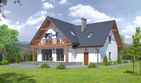 Graficzne opracowanie rzutów poglądowych widocznych na karcie projektu zostało wykonane przez Extradom.pl. Prezentowane przez Extradom.pl wizualizacje wykonane zostały przez autora projektu i należy poczytywać je jedynie za przykład i propozycję wykończenia, wizję architektoniczną autora projektu. Ostateczne wykończenie budynku może nastąpić na wiele sposobów. Szczegółowe rozwiązania zastosowane w oferowanej dokumentacji - w tym również ilość, lokalizacje i wygląd okien, drzwi, kominów - mogą w niewielkim stopniu różnić się od prezentowanej wizualizacji budynku.