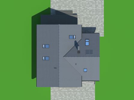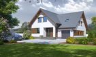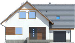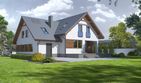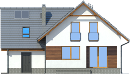 Graficzne opracowanie rzutów poglądowych widocznych na karcie projektu zostało wykonane przez Extradom.pl. Prezentowane przez Extradom.pl wizualizacje wykonane zostały przez autora projektu i należy poczytywać je jedynie za przykład i propozycję wykończenia, wizję architektoniczną autora projektu. Ostateczne wykończenie budynku może nastąpić na wiele sposobów. Szczegółowe rozwiązania zastosowane w oferowanej dokumentacji - w tym również ilość, lokalizacje i wygląd okien, drzwi, kominów - mogą w niewielkim stopniu różnić się od prezentowanej wizualizacji budynku.
