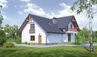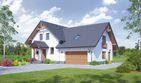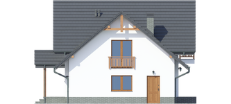Graficzne opracowanie rzutów poglądowych widocznych na karcie projektu zostało wykonane przez Extradom.pl. Prezentowane przez Extradom.pl wizualizacje wykonane zostały przez autora projektu i należy poczytywać je jedynie za przykład i propozycję wykończenia, wizję architektoniczną autora projektu. Ostateczne wykończenie budynku może nastąpić na wiele sposobów. Szczegółowe rozwiązania zastosowane w oferowanej dokumentacji - w tym również ilość, lokalizacje i wygląd okien, drzwi, kominów - mogą w niewielkim stopniu różnić się od prezentowanej wizualizacji budynku.