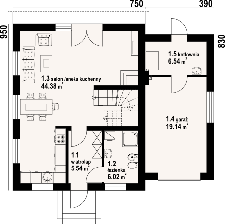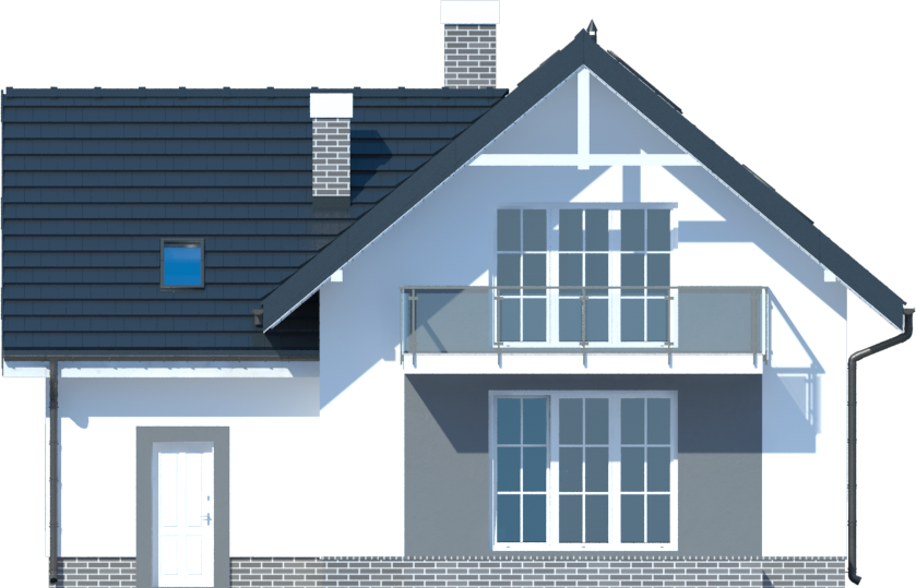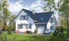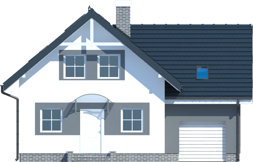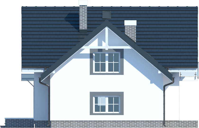 Graficzne opracowanie rzutów poglądowych widocznych na karcie projektu zostało wykonane przez Extradom.pl. Prezentowane przez Extradom.pl wizualizacje wykonane zostały przez autora projektu i należy poczytywać je jedynie za przykład i propozycję wykończenia, wizję architektoniczną autora projektu. Ostateczne wykończenie budynku może nastąpić na wiele sposobów. Szczegółowe rozwiązania zastosowane w oferowanej dokumentacji - w tym również ilość, lokalizacje i wygląd okien, drzwi, kominów - mogą w niewielkim stopniu różnić się od prezentowanej wizualizacji budynku.