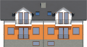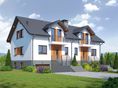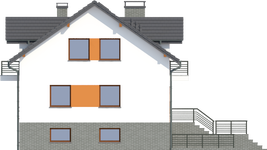 Graficzne opracowanie rzutów poglądowych widocznych na karcie projektu zostało wykonane przez Extradom.pl. Prezentowane przez Extradom.pl wizualizacje wykonane zostały przez autora projektu i należy poczytywać je jedynie za przykład i propozycję wykończenia, wizję architektoniczną autora projektu. Ostateczne wykończenie budynku może nastąpić na wiele sposobów. Szczegółowe rozwiązania zastosowane w oferowanej dokumentacji - w tym również ilość, lokalizacje i wygląd okien, drzwi, kominów - mogą w niewielkim stopniu różnić się od prezentowanej wizualizacji budynku.