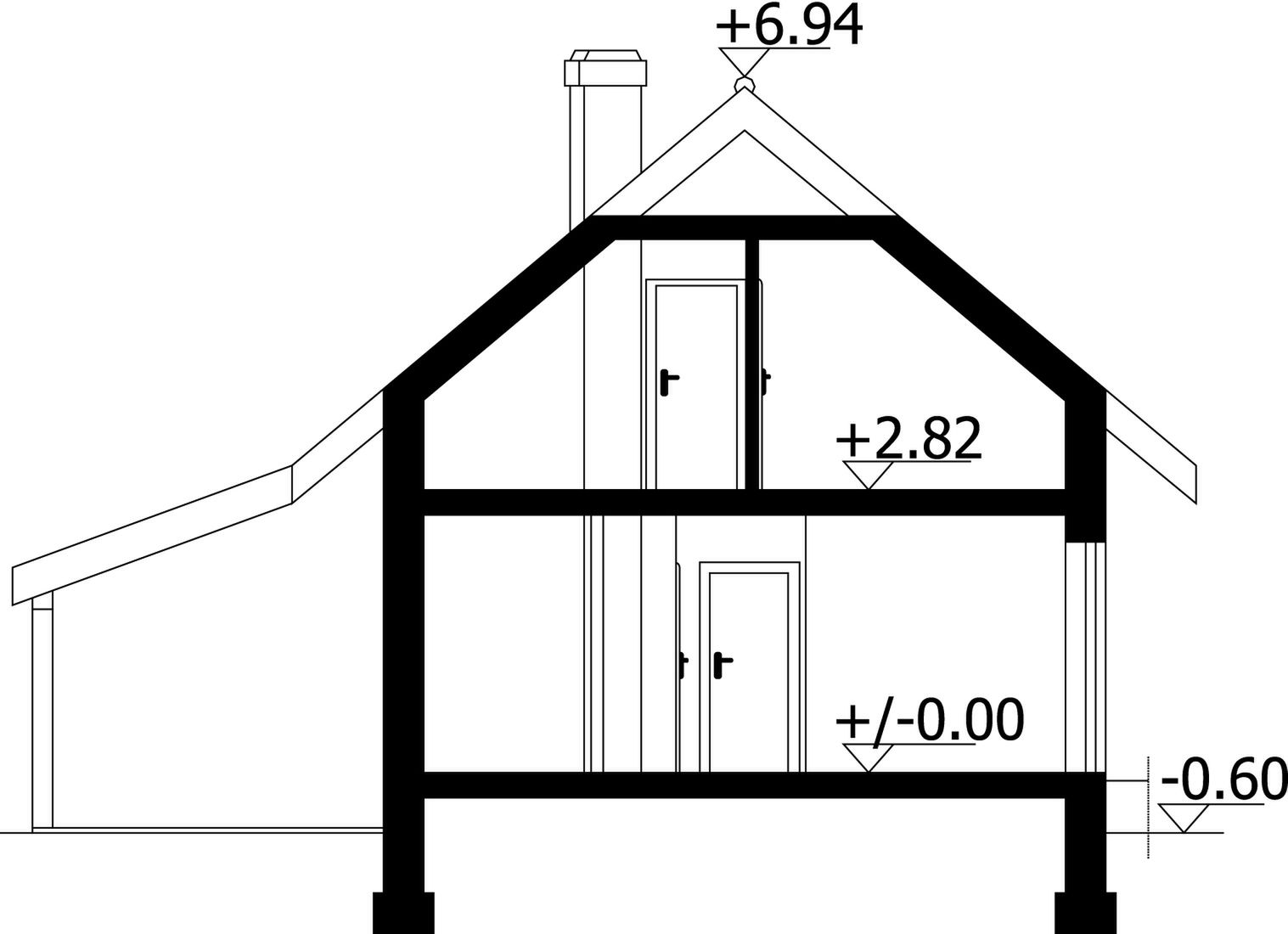 Wysokość ścianki kolankowej: 0.9 m. Strop: płyta żelbetowa. Pokrycie dachu: dachówka ceramiczna. Ściany zewnętrzne: pustaki ceramiczne + styropian. Ściany wewnętrzne: pustaki ceramiczne. Typ ogrzewania: kocioł gazowy lub kocioł na paliwo stałe.