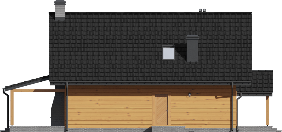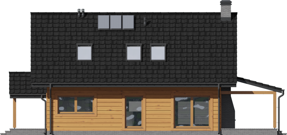 Graficzne opracowanie rzutów poglądowych widocznych na karcie projektu zostało wykonane przez Extradom.pl. Prezentowane przez Extradom.pl wizualizacje wykonane zostały przez autora projektu i należy poczytywać je jedynie za przykład i propozycję wykończenia, wizję architektoniczną autora projektu. Ostateczne wykończenie budynku może nastąpić na wiele sposobów. Szczegółowe rozwiązania zastosowane w oferowanej dokumentacji - w tym również ilość, lokalizacje i wygląd okien, drzwi, kominów - mogą w niewielkim stopniu różnić się od prezentowanej wizualizacji budynku.