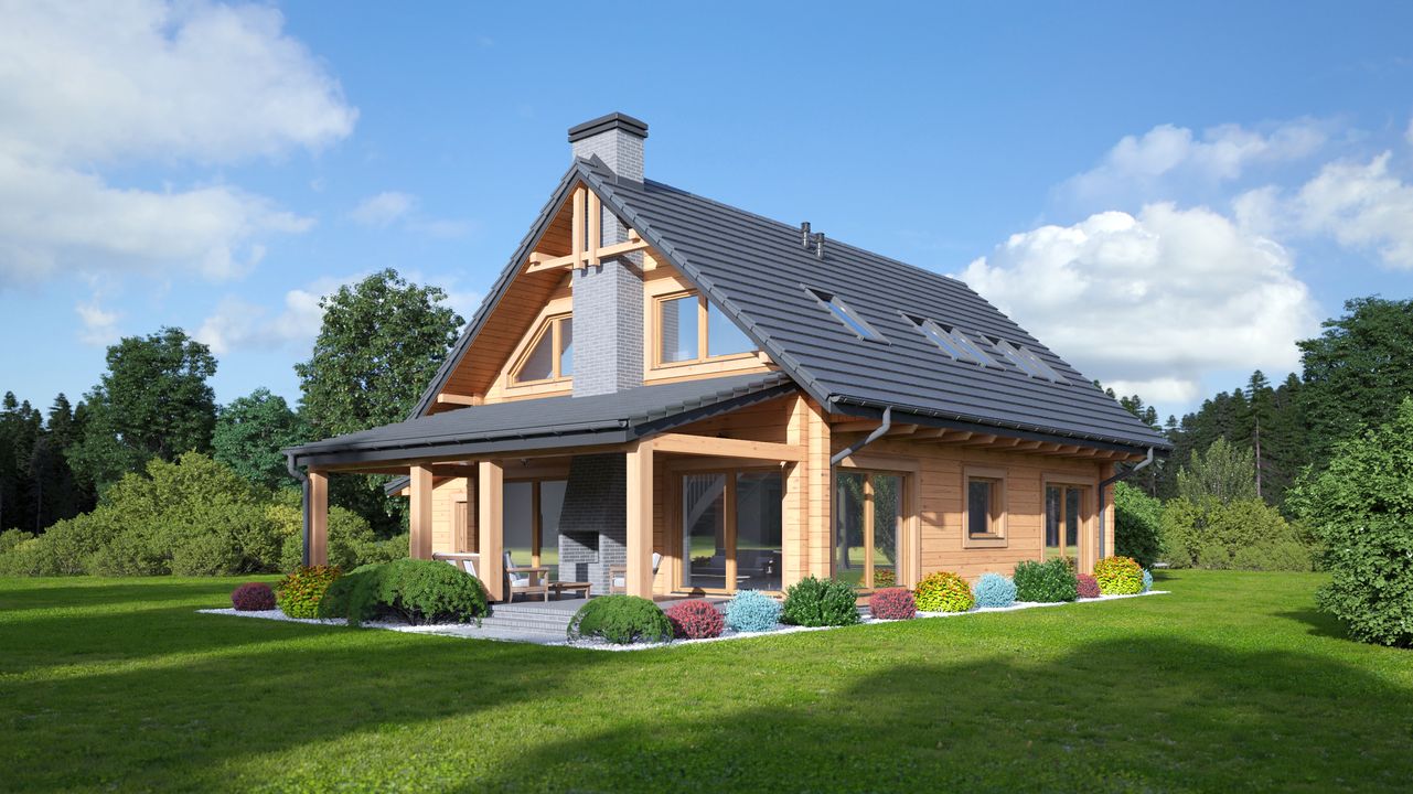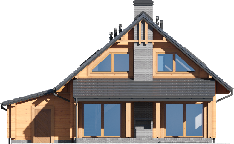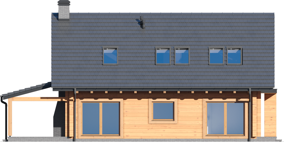 Graficzne opracowanie rzutów poglądowych widocznych na karcie projektu zostało wykonane przez Extradom.pl. Prezentowane przez Extradom.pl wizualizacje wykonane zostały przez autora projektu i należy poczytywać je jedynie za przykład i propozycję wykończenia, wizję architektoniczną autora projektu. Ostateczne wykończenie budynku może nastąpić na wiele sposobów. Szczegółowe rozwiązania zastosowane w oferowanej dokumentacji - w tym również ilość, lokalizacje i wygląd okien, drzwi, kominów - mogą w niewielkim stopniu różnić się od prezentowanej wizualizacji budynku.