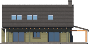 Graficzne opracowanie rzutów poglądowych widocznych na karcie projektu zostało wykonane przez Extradom.pl. Prezentowane przez Extradom.pl wizualizacje wykonane zostały przez autora projektu i należy poczytywać je jedynie za przykład i propozycję wykończenia, wizję architektoniczną autora projektu. Ostateczne wykończenie budynku może nastąpić na wiele sposobów. Szczegółowe rozwiązania zastosowane w oferowanej dokumentacji - w tym również ilość, lokalizacje i wygląd okien, drzwi, kominów - mogą w niewielkim stopniu różnić się od prezentowanej wizualizacji budynku.