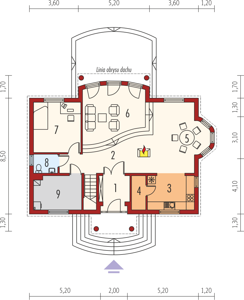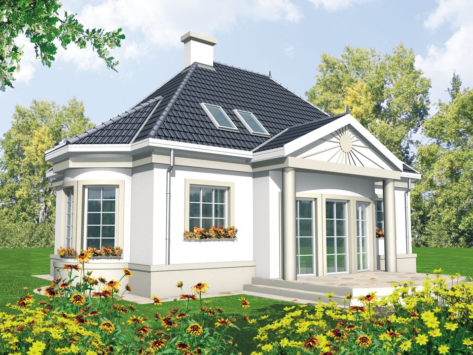 Graficzne opracowanie rzutów poglądowych widocznych na karcie projektu zostało wykonane przez Extradom.pl. Prezentowane przez Extradom.pl wizualizacje wykonane zostały przez autora projektu i należy poczytywać je jedynie za przykład i propozycję wykończenia, wizję architektoniczną autora projektu. Ostateczne wykończenie budynku może nastąpić na wiele sposobów. Szczegółowe rozwiązania zastosowane w oferowanej dokumentacji - w tym również ilość, lokalizacje i wygląd okien, drzwi, kominów - mogą w niewielkim stopniu różnić się od prezentowanej wizualizacji budynku.