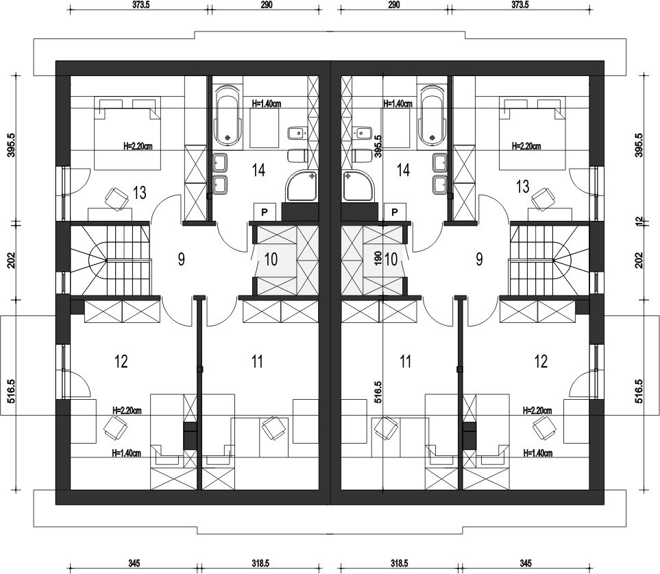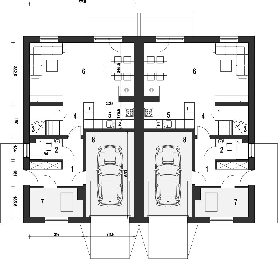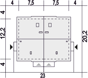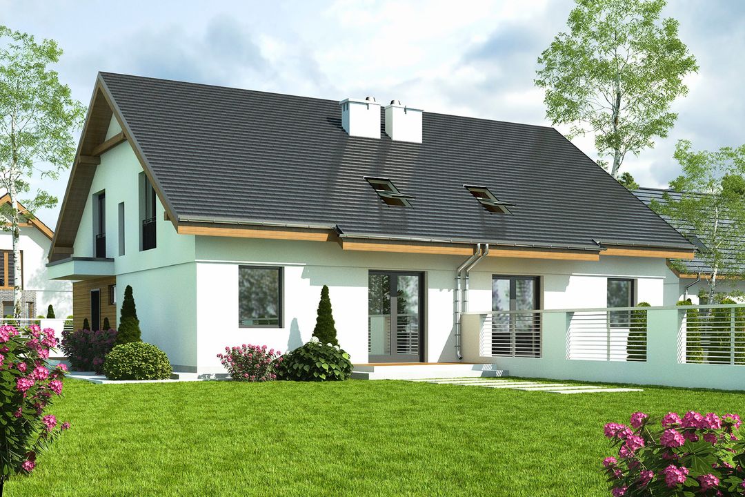 Projekt wymaga aktualizacji. Przy zakupie projektu należy zapłacić 50% zaliczki. Zaliczka jest bezzwrotna w przypadku zwrotu lub rezygnacji z zamówienia. Budynek dwulokalowy posadowiony na wspólnym fundamencie. Jeśli planujesz budowę na osobnych działkach zamów pojedyncze segmenty: podstawa + lustro.