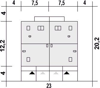 Budynek dwulokalowy posadowiony na wspólnym fundamencie. Jeśli planujesz budowę na osobnych działkach zamów pojedyncze segmenty: podstawa + lustro.