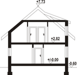 Wysokość ścianki kolankowej: 1.26 m. Strop: płyta żelbetowa. Pokrycie dachu: dachówka ceramiczna Koramic. Ściany zewnętrzne: pustaki ceramiczne Porotherm + styropian. Ściany wewnętrzne: pustaki ceramiczne Porotherm. Typ ogrzewania: kocioł gazowy lub kocioł na paliwo stałe. Instalacje dodatkowe: instalacja solarna.
