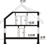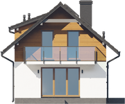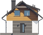 Graficzne opracowanie rzutów poglądowych widocznych na karcie projektu zostało wykonane przez Extradom.pl. Prezentowane przez Extradom.pl wizualizacje wykonane zostały przez autora projektu i należy poczytywać je jedynie za przykład i propozycję wykończenia, wizję architektoniczną autora projektu. Ostateczne wykończenie budynku może nastąpić na wiele sposobów. Szczegółowe rozwiązania zastosowane w oferowanej dokumentacji - w tym również ilość, lokalizacje i wygląd okien, drzwi, kominów - mogą w niewielkim stopniu różnić się od prezentowanej wizualizacji budynku.