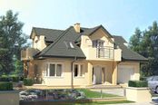 Graficzne opracowanie rzutów poglądowych widocznych na karcie projektu zostało wykonane przez Extradom.pl. Prezentowane przez Extradom.pl wizualizacje wykonane zostały przez autora projektu i należy poczytywać je jedynie za przykład i propozycję wykończenia, wizję architektoniczną autora projektu. Ostateczne wykończenie budynku może nastąpić na wiele sposobów. Szczegółowe rozwiązania zastosowane w oferowanej dokumentacji - w tym również ilość, lokalizacje i wygląd okien, drzwi, kominów - mogą w niewielkim stopniu różnić się od prezentowanej wizualizacji budynku.