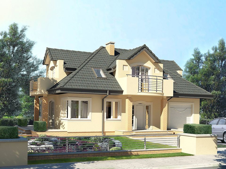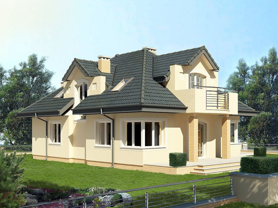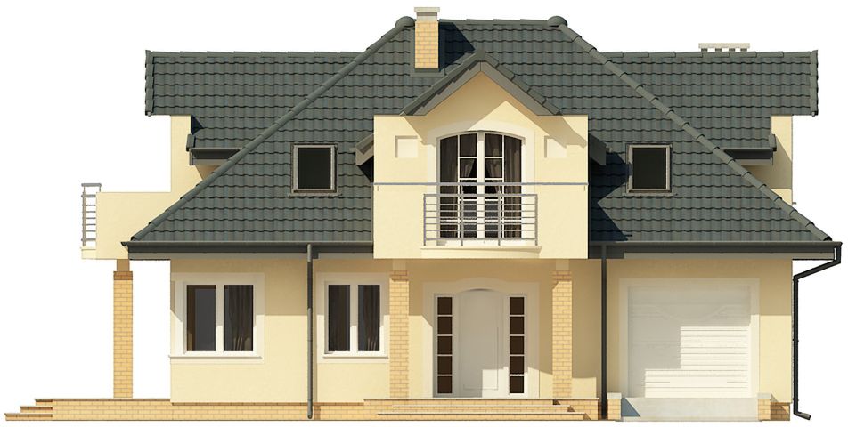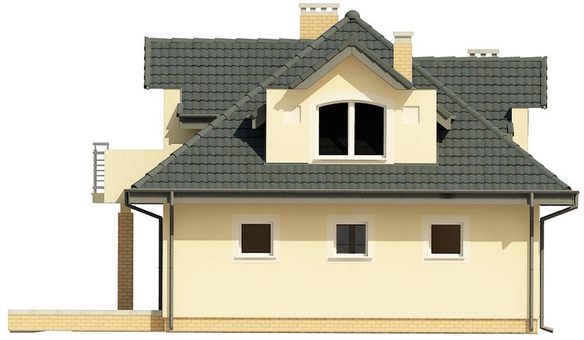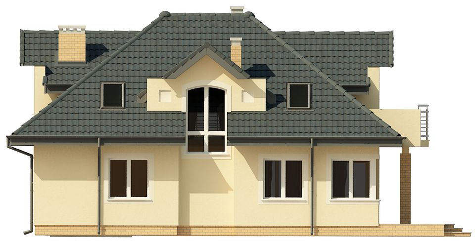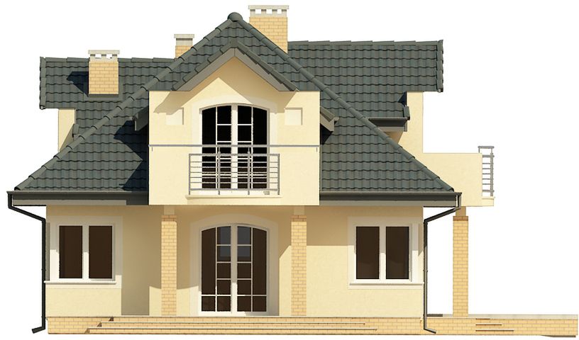 Graficzne opracowanie rzutów poglądowych widocznych na karcie projektu zostało wykonane przez Extradom.pl. Prezentowane przez Extradom.pl wizualizacje wykonane zostały przez autora projektu i należy poczytywać je jedynie za przykład i propozycję wykończenia, wizję architektoniczną autora projektu. Ostateczne wykończenie budynku może nastąpić na wiele sposobów. Szczegółowe rozwiązania zastosowane w oferowanej dokumentacji - w tym również ilość, lokalizacje i wygląd okien, drzwi, kominów - mogą w niewielkim stopniu różnić się od prezentowanej wizualizacji budynku.