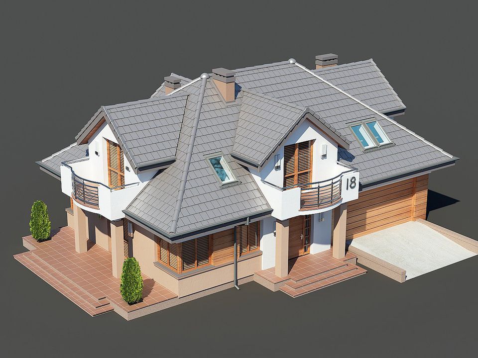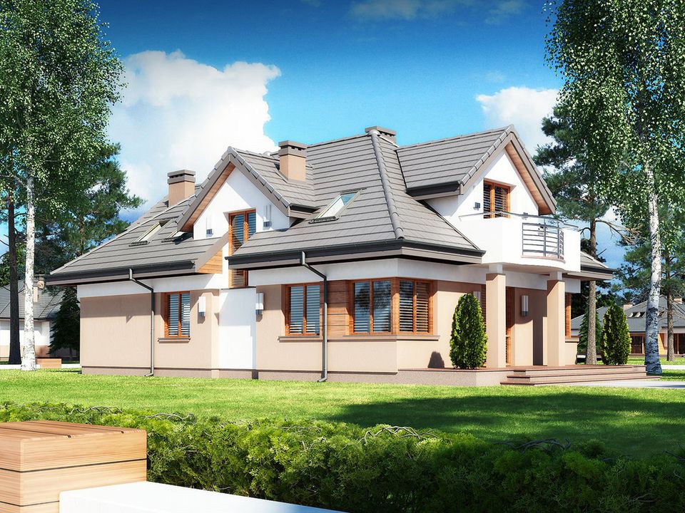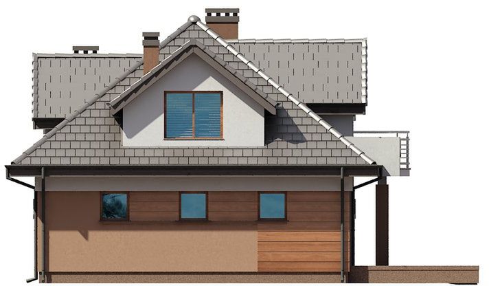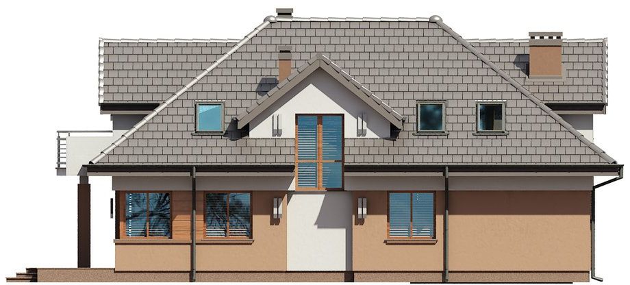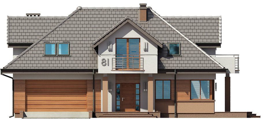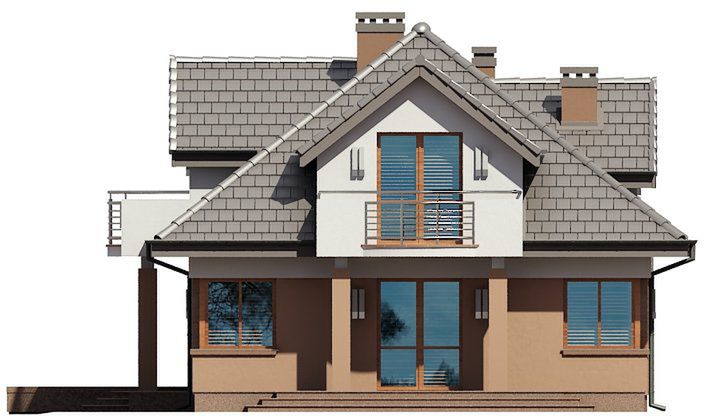Graficzne opracowanie rzutów poglądowych widocznych na karcie projektu zostało wykonane przez Extradom.pl. Prezentowane przez Extradom.pl wizualizacje wykonane zostały przez autora projektu i należy poczytywać je jedynie za przykład i propozycję wykończenia, wizję architektoniczną autora projektu. Ostateczne wykończenie budynku może nastąpić na wiele sposobów. Szczegółowe rozwiązania zastosowane w oferowanej dokumentacji - w tym również ilość, lokalizacje i wygląd okien, drzwi, kominów - mogą w niewielkim stopniu różnić się od prezentowanej wizualizacji budynku.