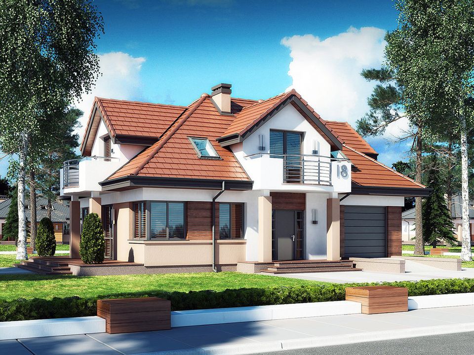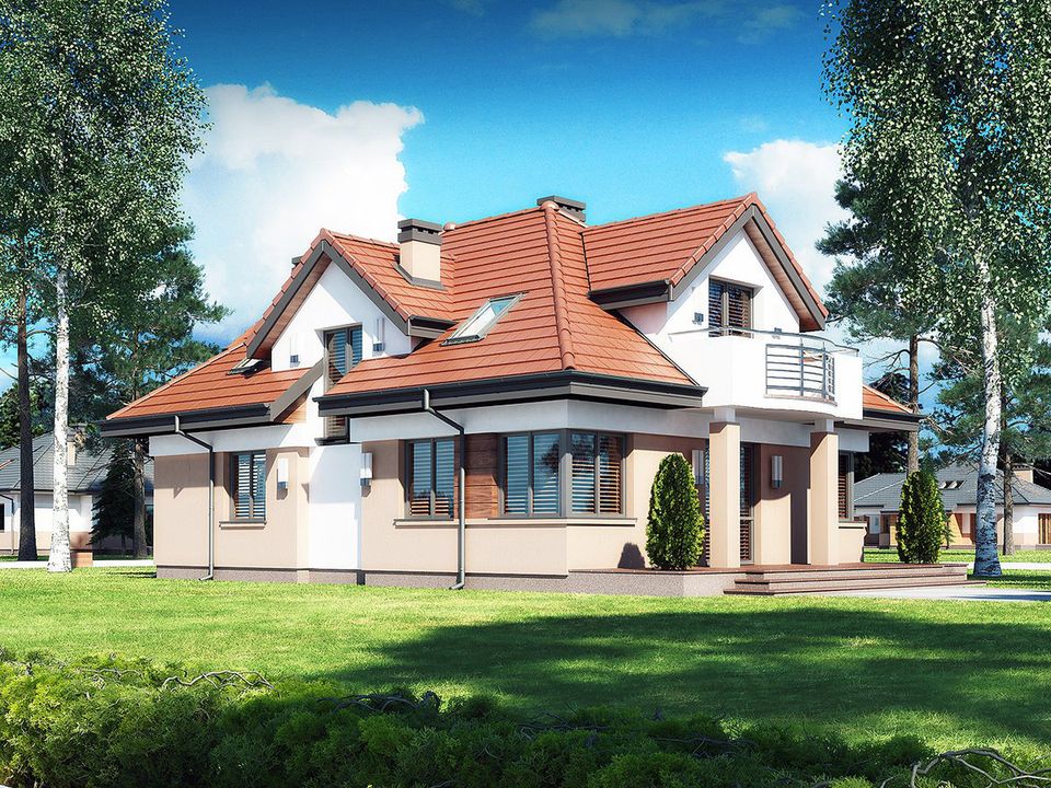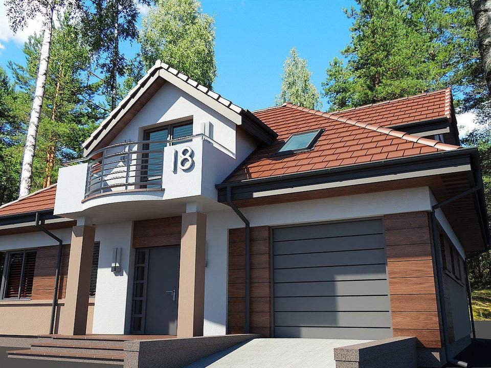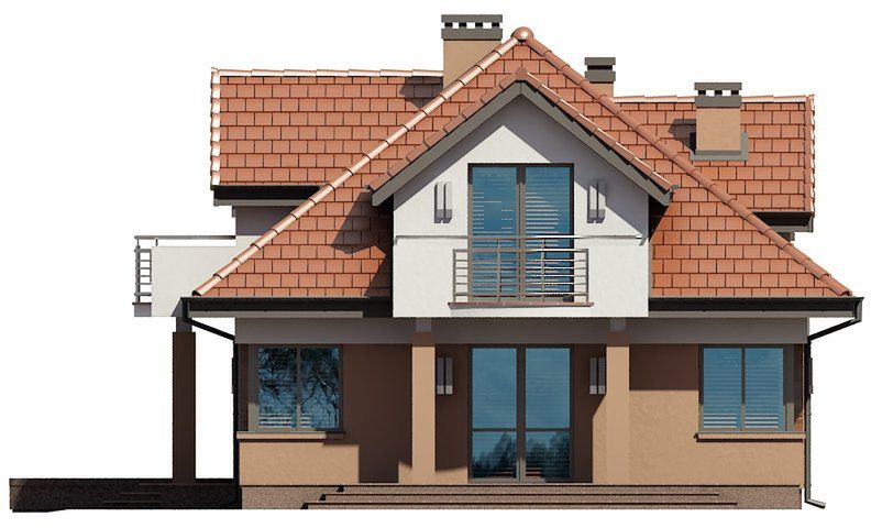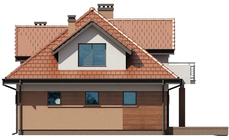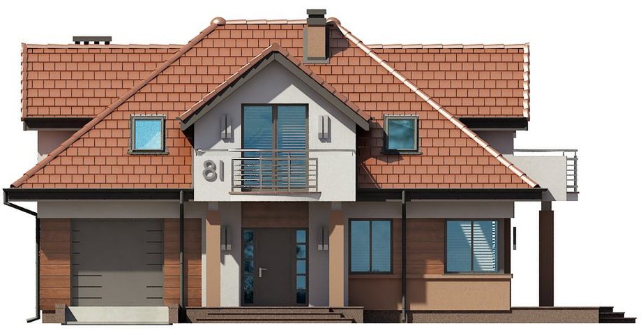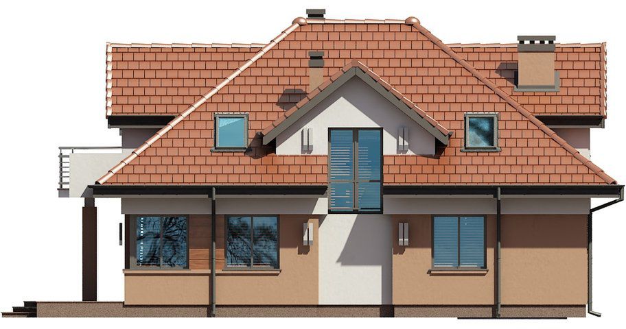 Graficzne opracowanie rzutów poglądowych widocznych na karcie projektu zostało wykonane przez Extradom.pl. Prezentowane przez Extradom.pl wizualizacje wykonane zostały przez autora projektu i należy poczytywać je jedynie za przykład i propozycję wykończenia, wizję architektoniczną autora projektu. Ostateczne wykończenie budynku może nastąpić na wiele sposobów. Szczegółowe rozwiązania zastosowane w oferowanej dokumentacji - w tym również ilość, lokalizacje i wygląd okien, drzwi, kominów - mogą w niewielkim stopniu różnić się od prezentowanej wizualizacji budynku.